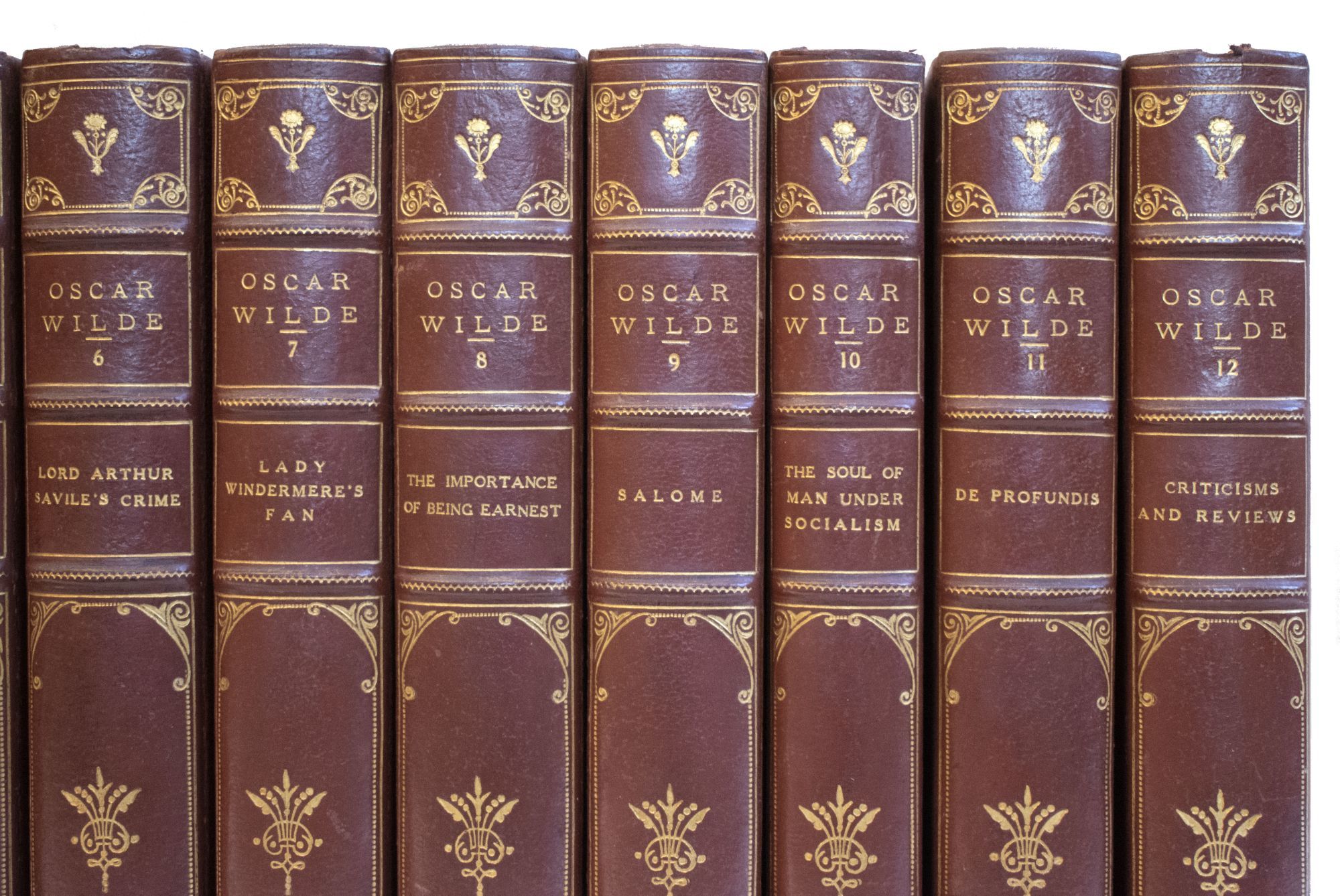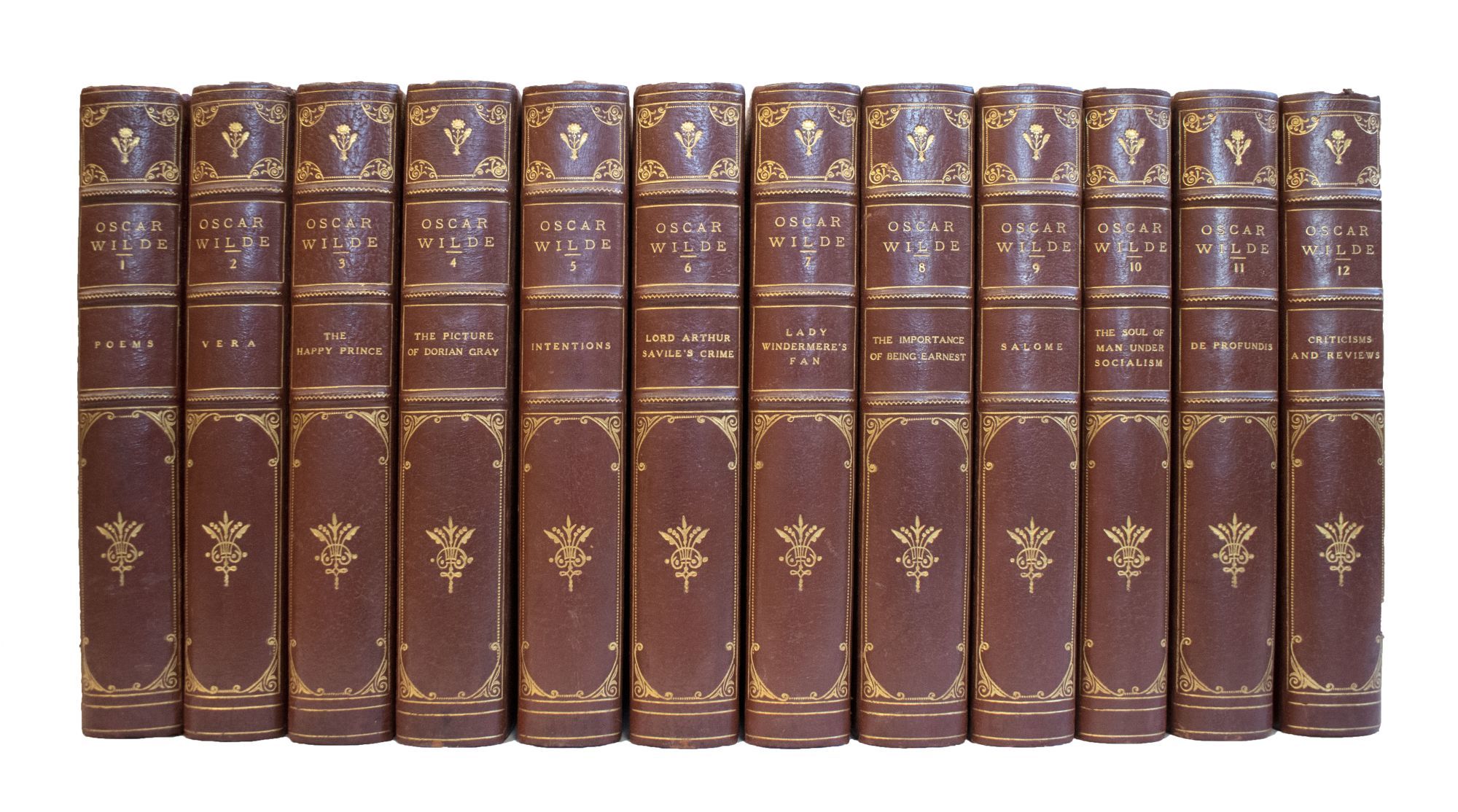 New York: Gabriel Wells, 1925. Copy Number #36 of 575 numbered sets of this Large Paper Edition. 12 vols. 8vo. Bound in three quarter brown morocco and cloth sides, t.e.g. by Stikeman & Co., N.Y. Copy Number #36 of 575 numbered sets of this Large Paper Edition. 12 vols. 8vo. A finely bound set of this collection of Wilde's writings, with supplementary material by Wilde's contemporaries in each volume (W.B. Yeats, Walter Pater, John Cowper Powys, John Drinkwater, Arthur Symons, Padraic Colum, et al.).