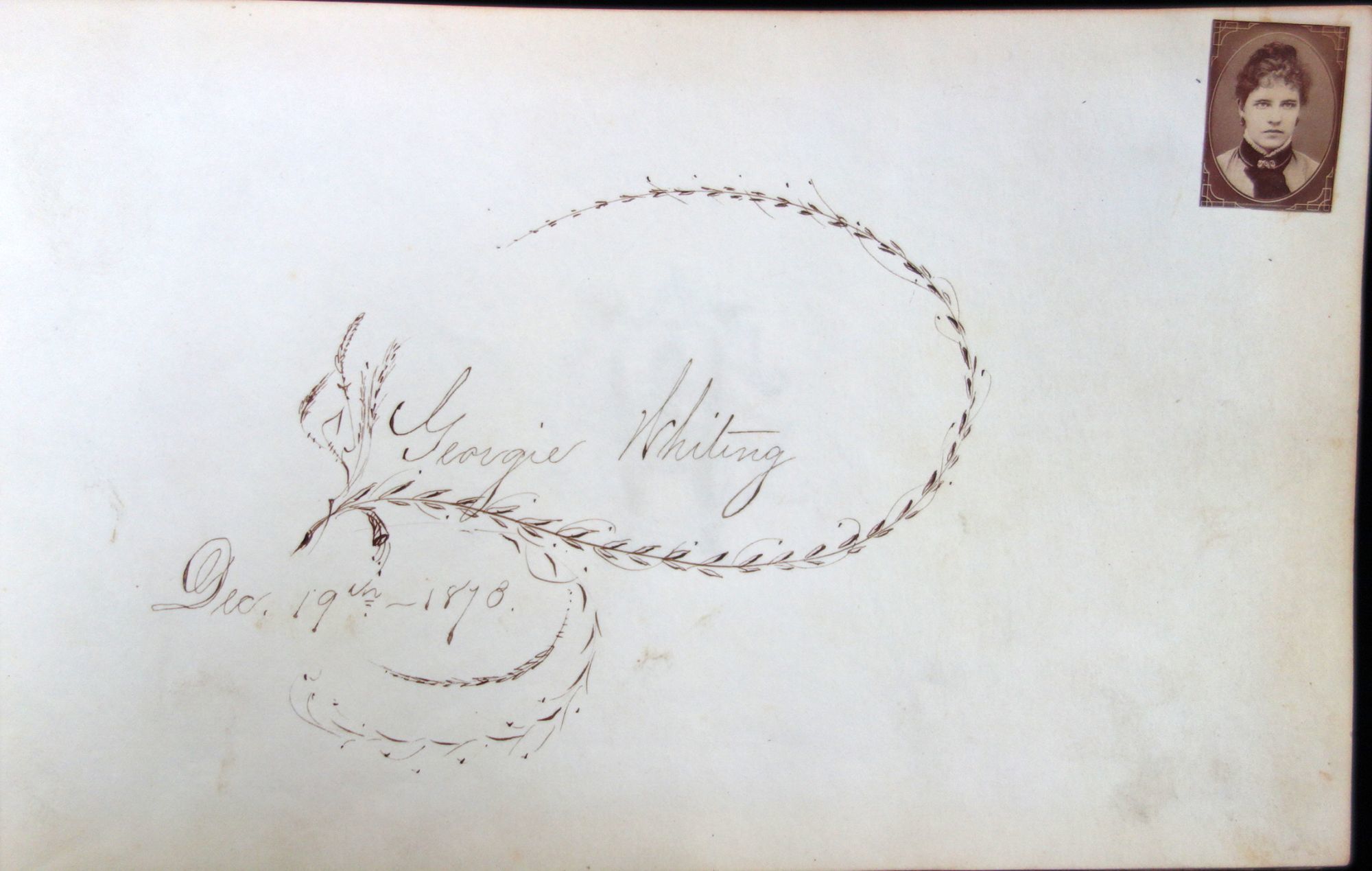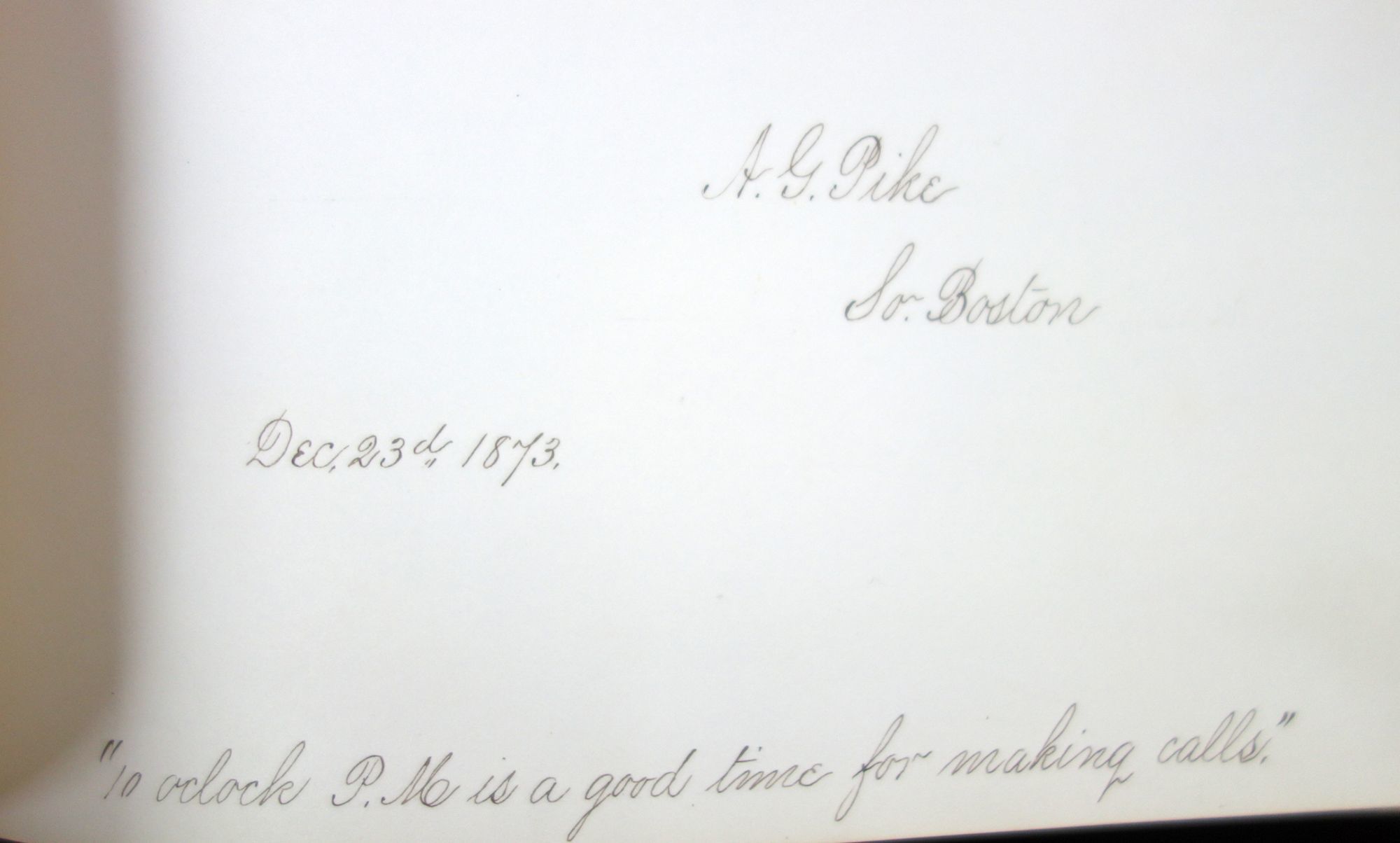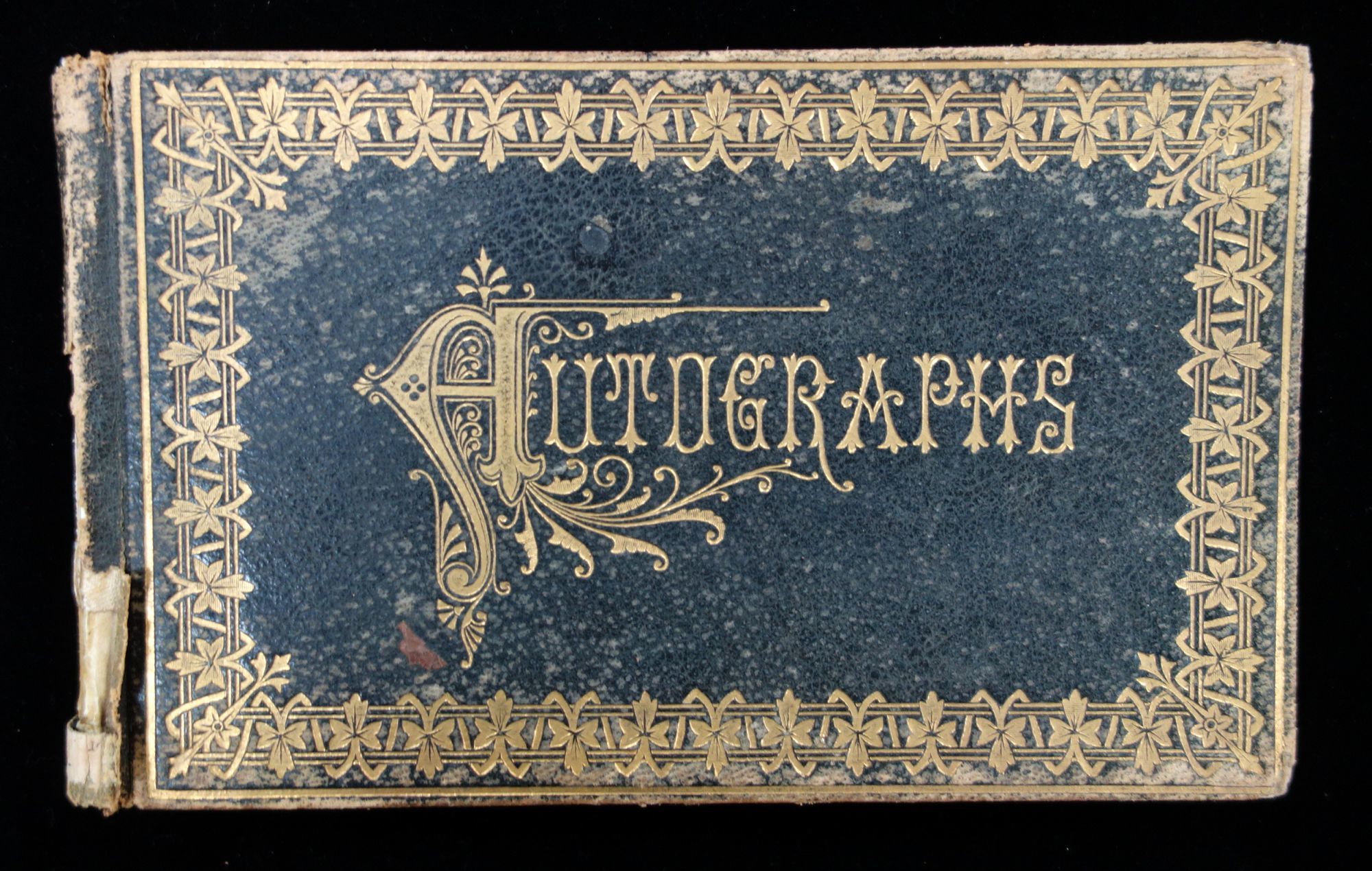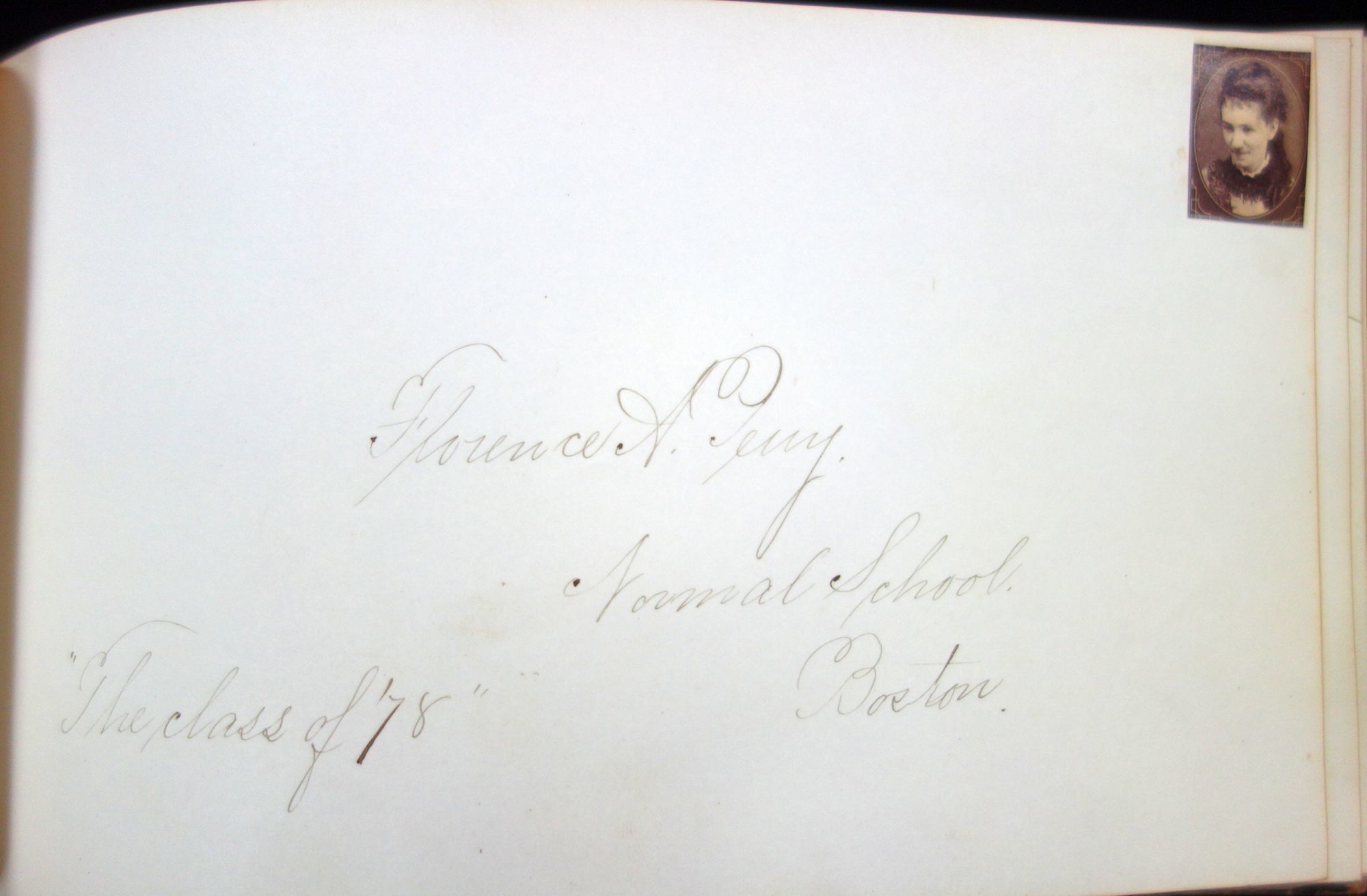 Gilt black leather cover. A true autograph book with signatures, location, and date. Most in Boston or the Boston area. Several from Normal School and/or with gem size photos at upper right corner; mostly women. A few state "Boston Normal School Class '78" other say "C.H.S. class of '75" and include the town of Charlestown. Mass. 5" x 8" Cover wear, portion of back strip lacking.