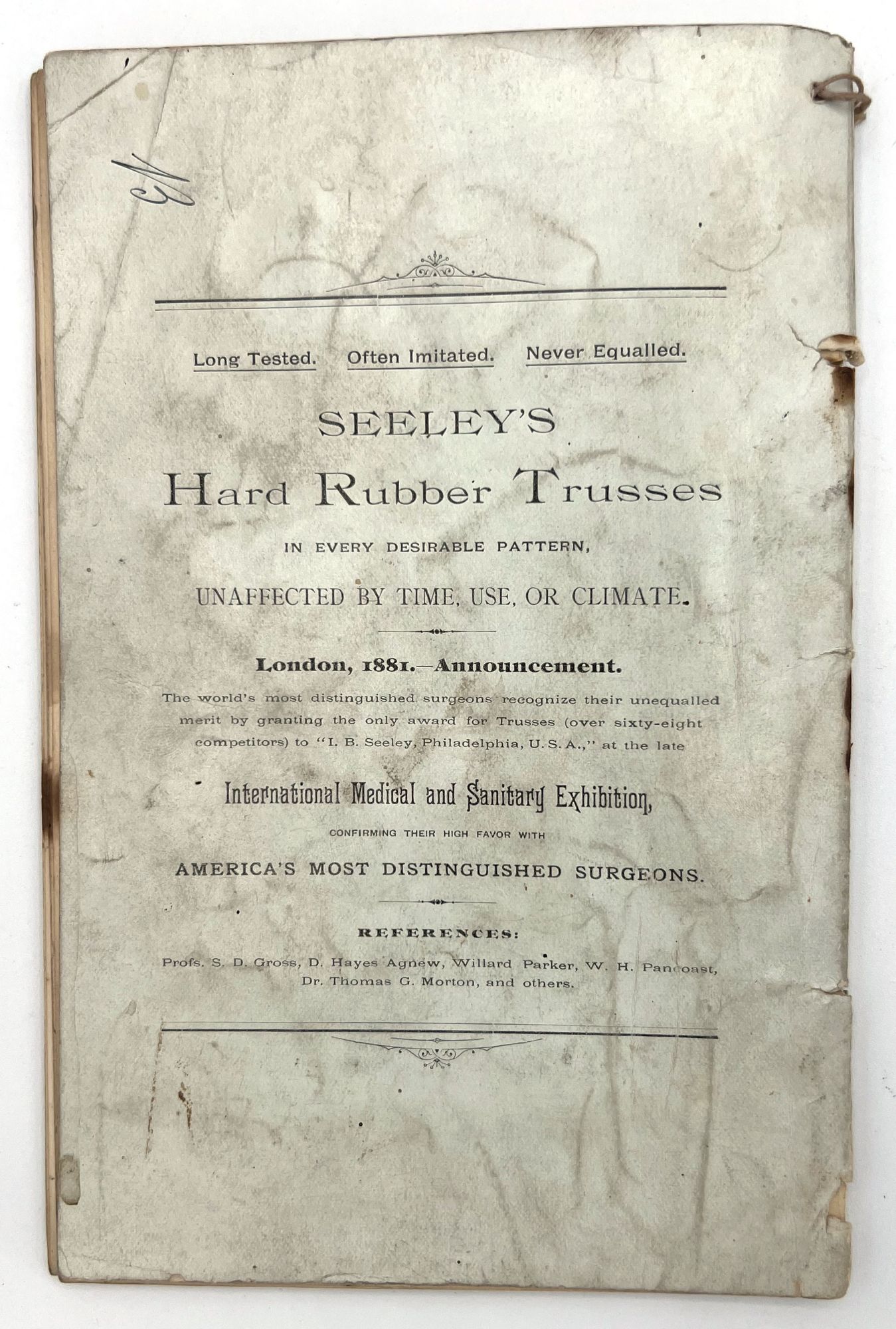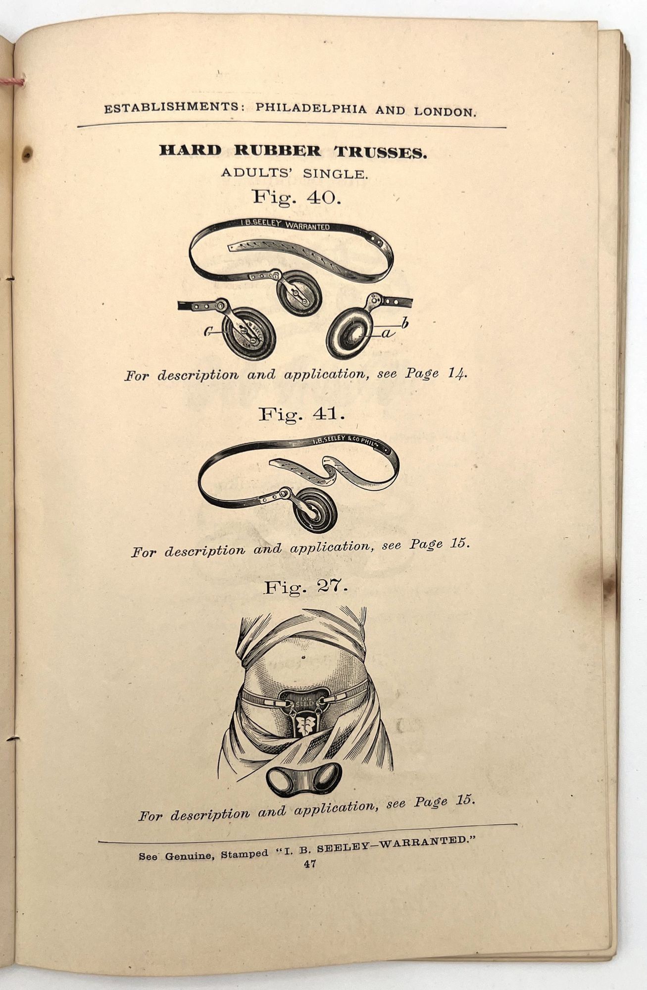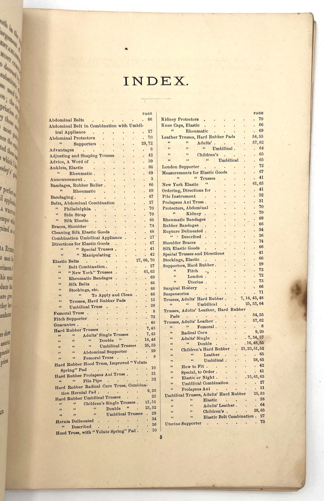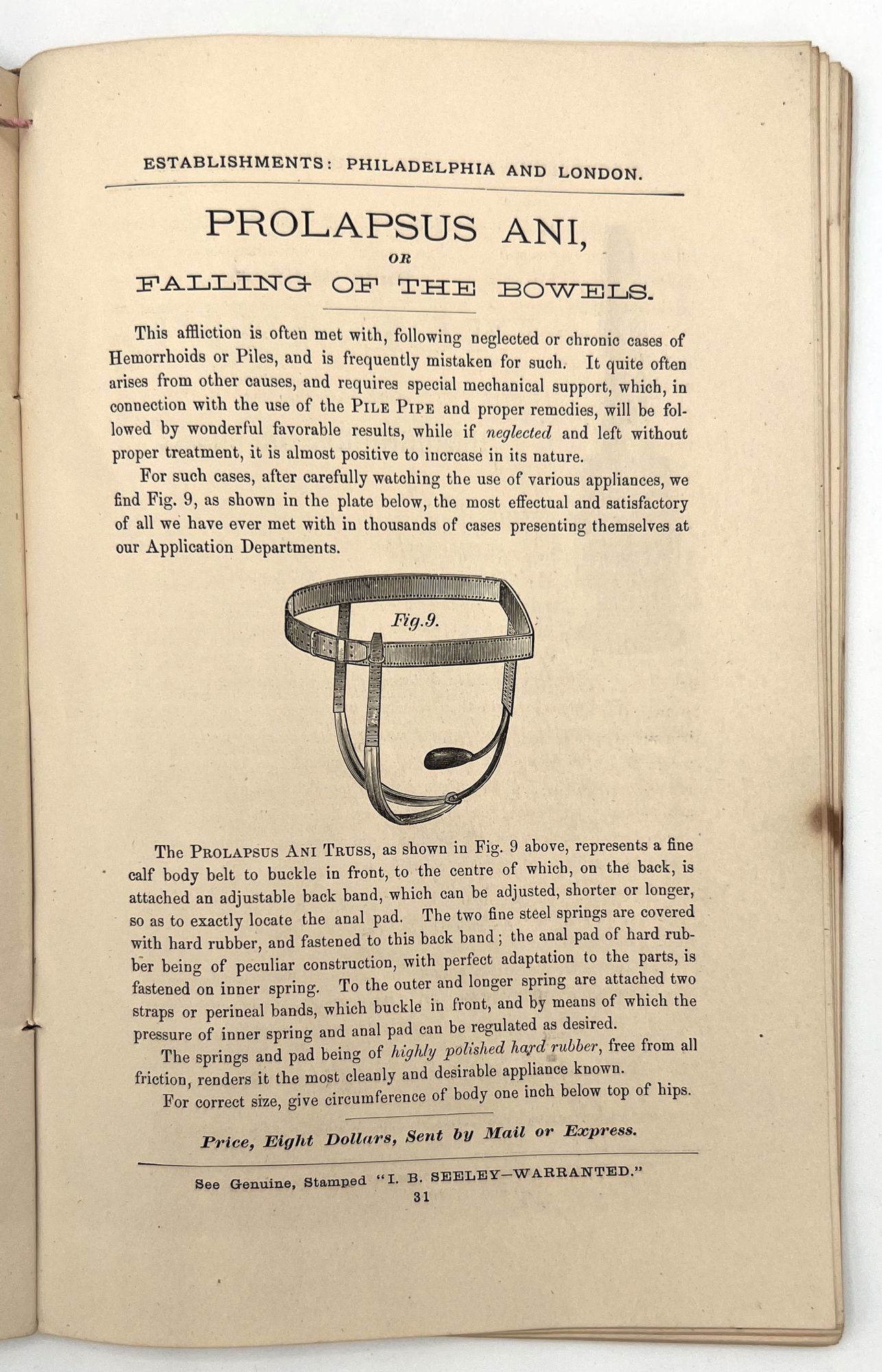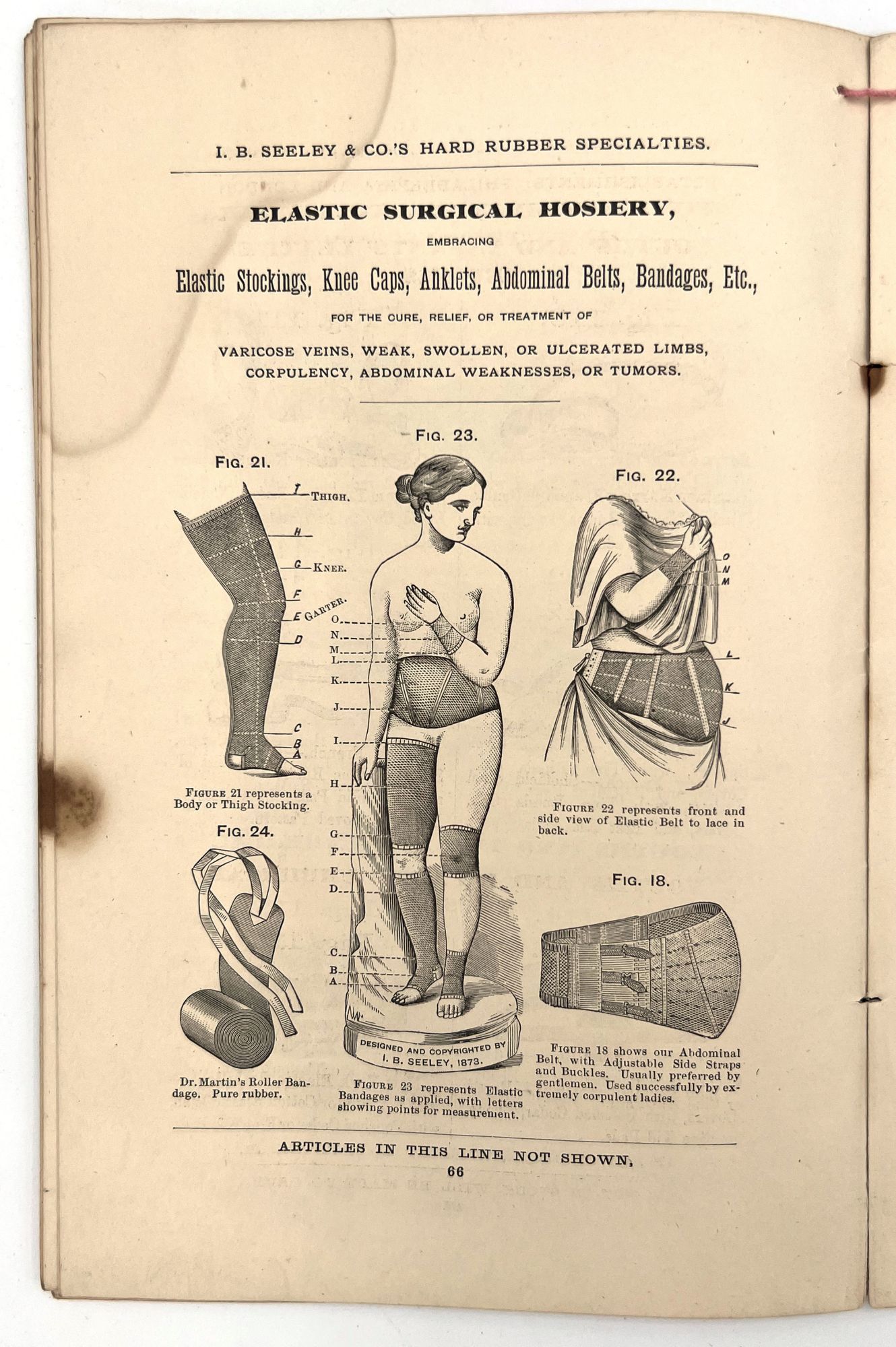 Comprehensive descriptions, some prices, and B&W illustrations of medical devices made from rubber used to relieve various ailments, such as abdominal pain, rheumatic affections, and the 'falling of the bowels.'