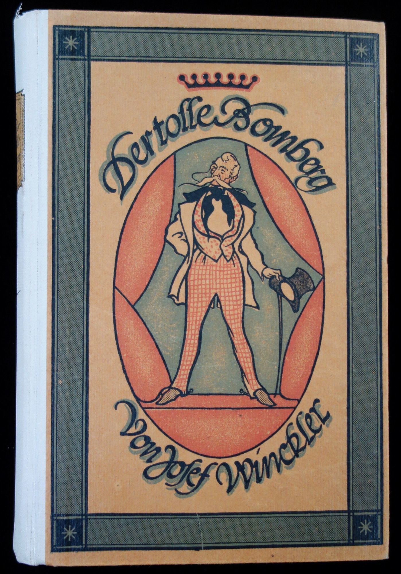 Berlin: Deutsche Berlags, 1924. 397 pp. illustrated applied cover, brown with red and green image of man with top hat and cane.
