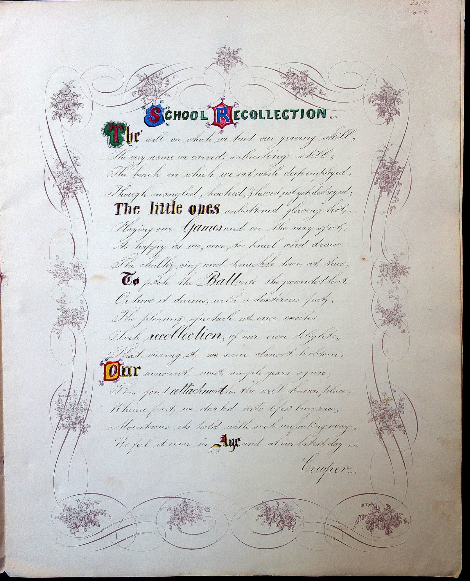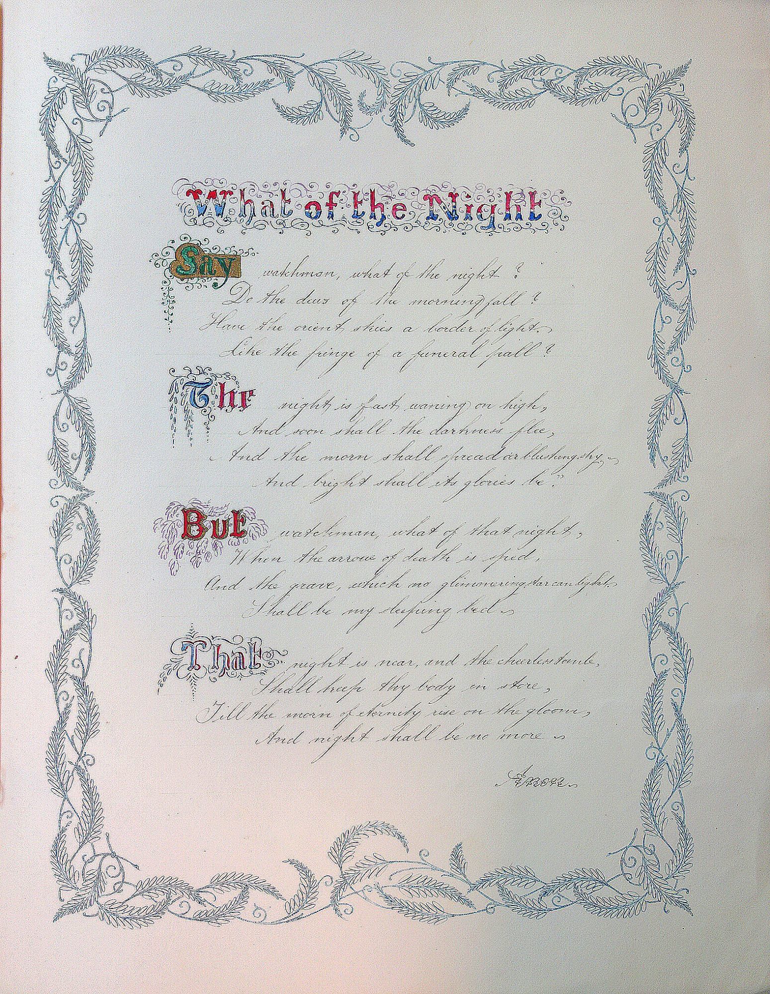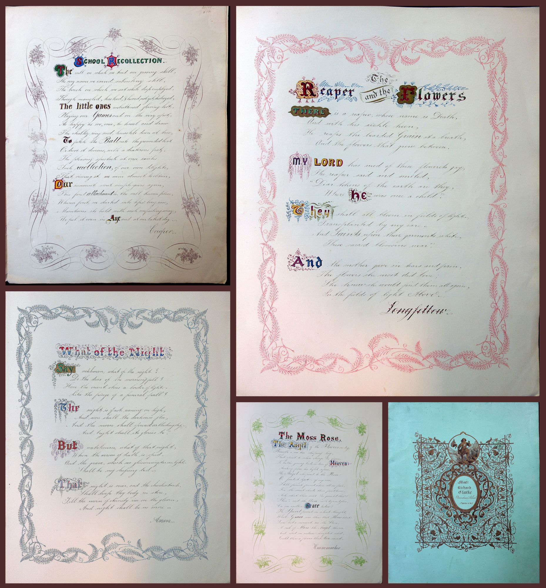 Artistic Penmanship - Master Richard Clarke - Burnham School -Poetry with Illuminated Letters