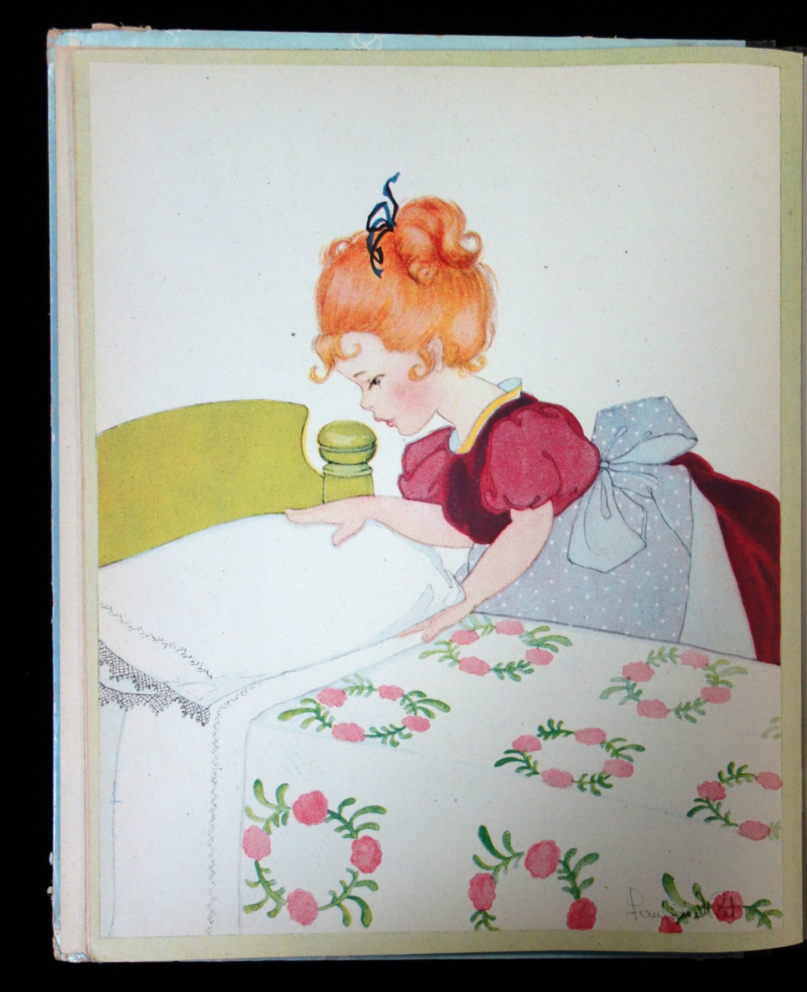 Akron, Ohio: Saalfield Publishing Company, 1933. Overall the condition is good, the binding shows some wear and is a bit loose.. This books has several simple and sweet stories that all center around a grandma telling anecdotes about her life when she was young to her grandchildren. 34 pages. Each story starts the same way, with a grandchild commenting on the activity or conversation being had, and then the grandma begins to reminisce. There are beautiful, full page illustrations done by Fern Bisel Peat that add to the story. The text is also full page, with one illustration for each story. 11 1/2" x 9
