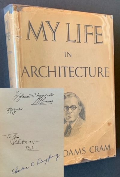 Boston: Little, Brown & Co, 1937. Cloth. Very Good/Good +. INSCRIBED BY ARCHITECT RALPH ADAMS CRAM on the front free endpaper. A presentable copy to boot of the January 1937 2nd printing, IN ITS UNCOMMON PICTORIAL DUSTJACKET. Tight and VG (light bumping to the upper tips, an additional very small inscription and one further signature at the front free endpaper) in a bright, Good only example of the very fragile dustjacket, with a degree of chipping and creasing along the panel edges, and 2" of loss at the foot of the spine. Still though, not unattractive -- and uncommon as such, both inscribed by Ralph Adams Cram and including the original dustjacket.