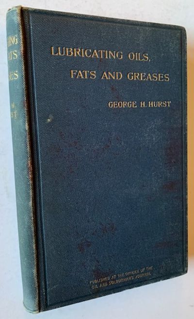 London: Scott, Greenwood & Co, 1896. Cloth. Very Good +. The 1896 1st edition. Solid and VG+ in its navy-blue cloth, with bright gilt-titling along the front panel and spine. Mild fading along the foot of the spine, light foxing to the preliminaries and along the fore-edge. Octavo, a number of steel engravings and charts throughout. Fascinating study of lubrications and their uses in machinery.