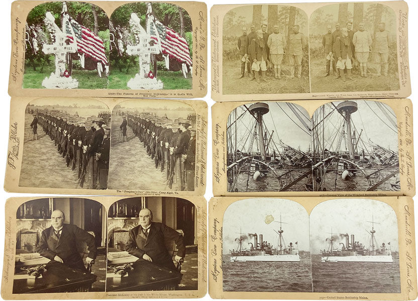 V.p., 1898. Very Good. V.p.: 1898-1901. Collection of fourteen stereoviews relating to the Spanish-America War and related American politics. A few rubbed at extremities, else a Very Good, still quite bright collection. Photographs as follows: