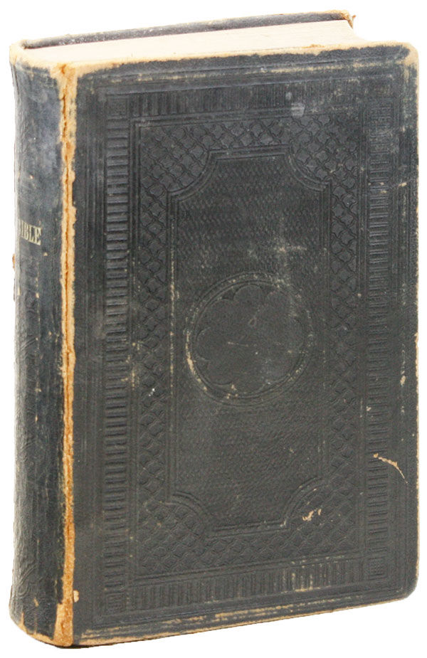 New York: American Bible Society, 1852. Very Good. New York: American Bible Society, 1852. 105th Edition. 12mo (17.75cm.); publisher's black elaborately blind-embossed morocco, gilt-lettered spine; 591,[5],184pp. Boards rather rubbed at extremities, foxing throughout, else Near Very Good and sound.