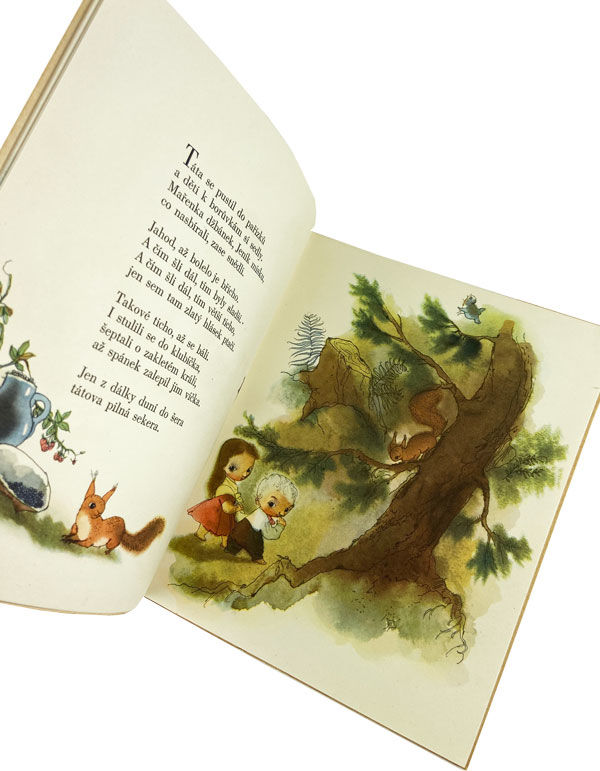 Czech poet Václav Ren 's interpretation in verse of the Brothers Grimm fairy tale "Hansel and Gretel," lavishly illustrated by a young(ish) Jiri Trnka (1912-1969). Following the end of World War II, Trnka turned his hand to puppeteering and animation and has been dubbed today as "the Walt Disney of Eastern Europe" (Dominik Jun, "Jirí Trnka: 100th Anniversary of the Birth of a Great Czech Animator" (2012)).