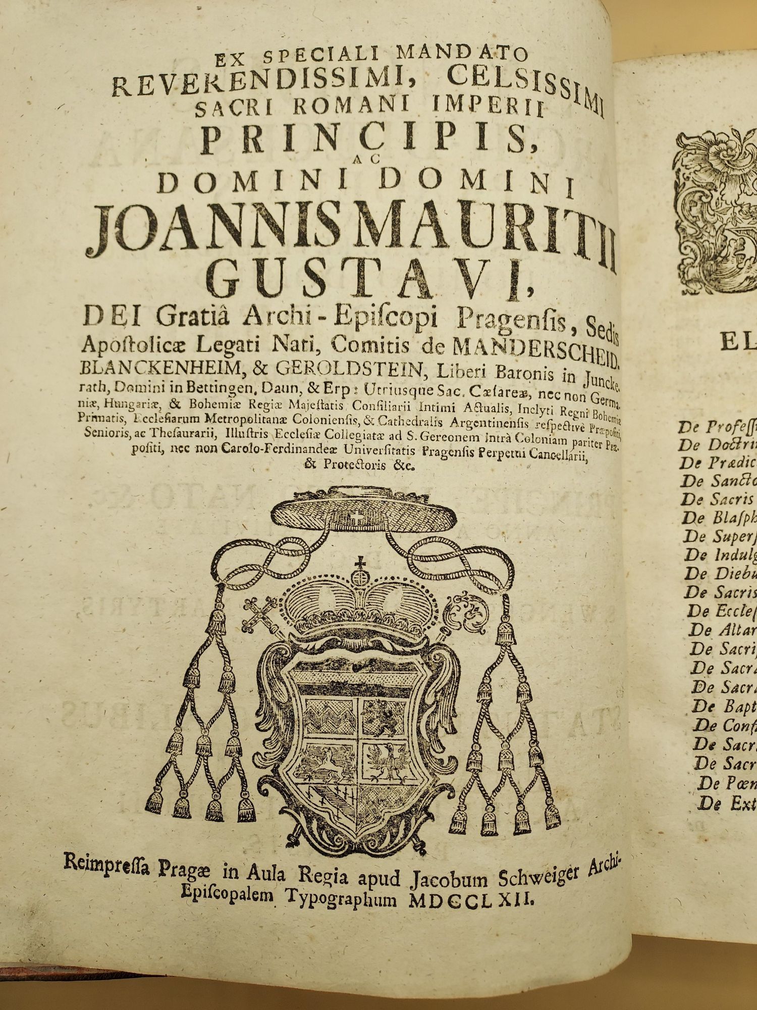 - [Prague]: Reimpressa Pragæ in Aula Regia apud Jacobum Schweiger Archi-Episcopalem Typographum, 1762