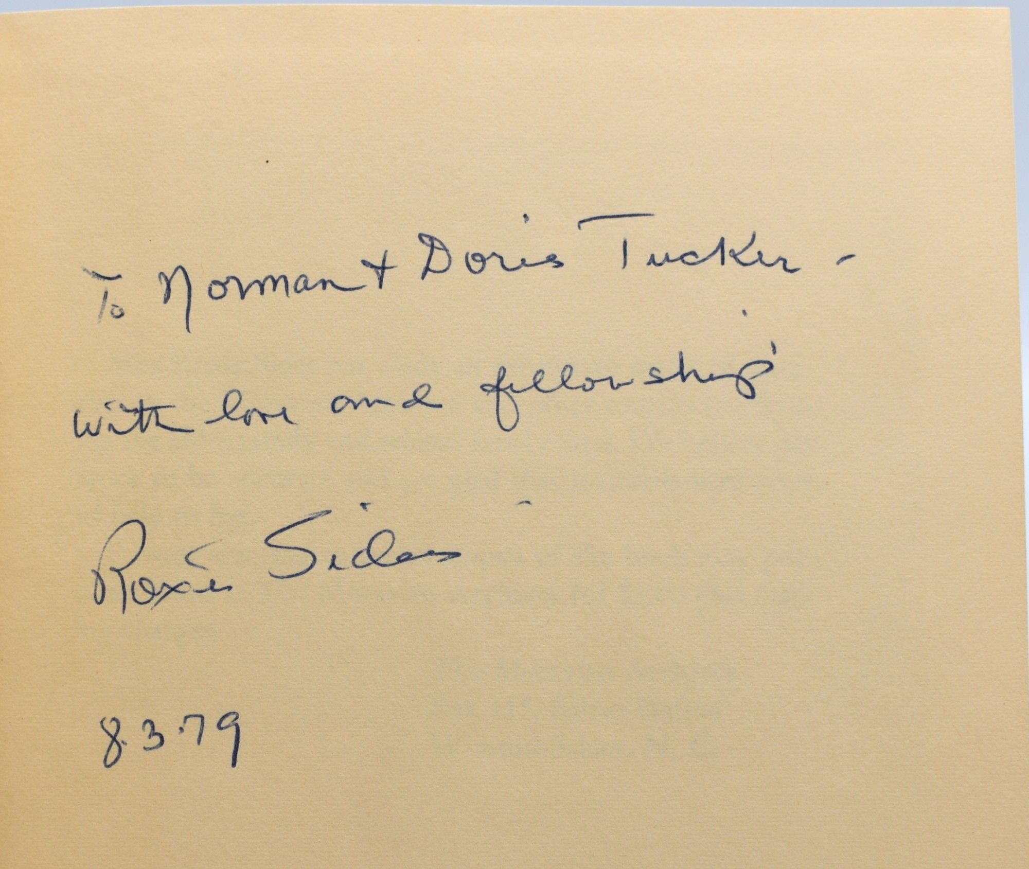 Winston-Salem, N. C.: Self-Published, 1963. First Edition. Hard Cover. Very Good binding/Very Good dust jacket. 8vo.; pale green cloth with titling in gold, and with dustjacket; xiii, [2], 3-140 pages, followed by several blank leaves (though blank, they are undoubtedly intended for the reader to make notes); with wood cut illustrations; printed in black and green; this copy is signed with a personal inscription by Miss Sides on the front free endpaper. Very Good binding / Very Good dust jacket.