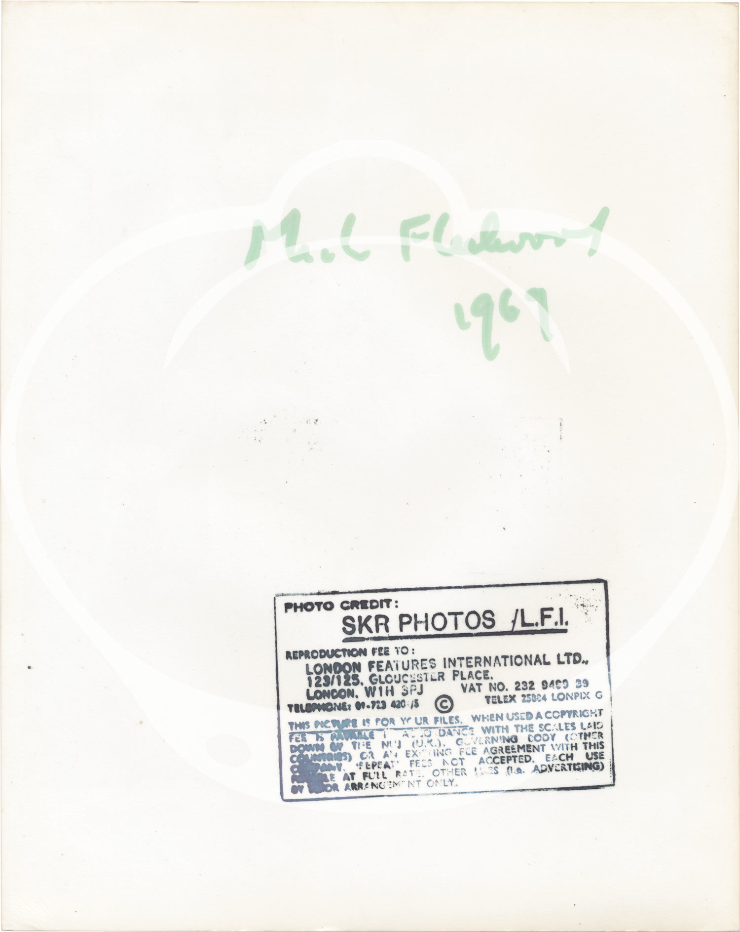 N.p.: N.p., 1971. Three vintage black and white photographs of Mick Fleetwood, including one borderless and two bordered. With the stamp of SKR Photos in London on the verso.