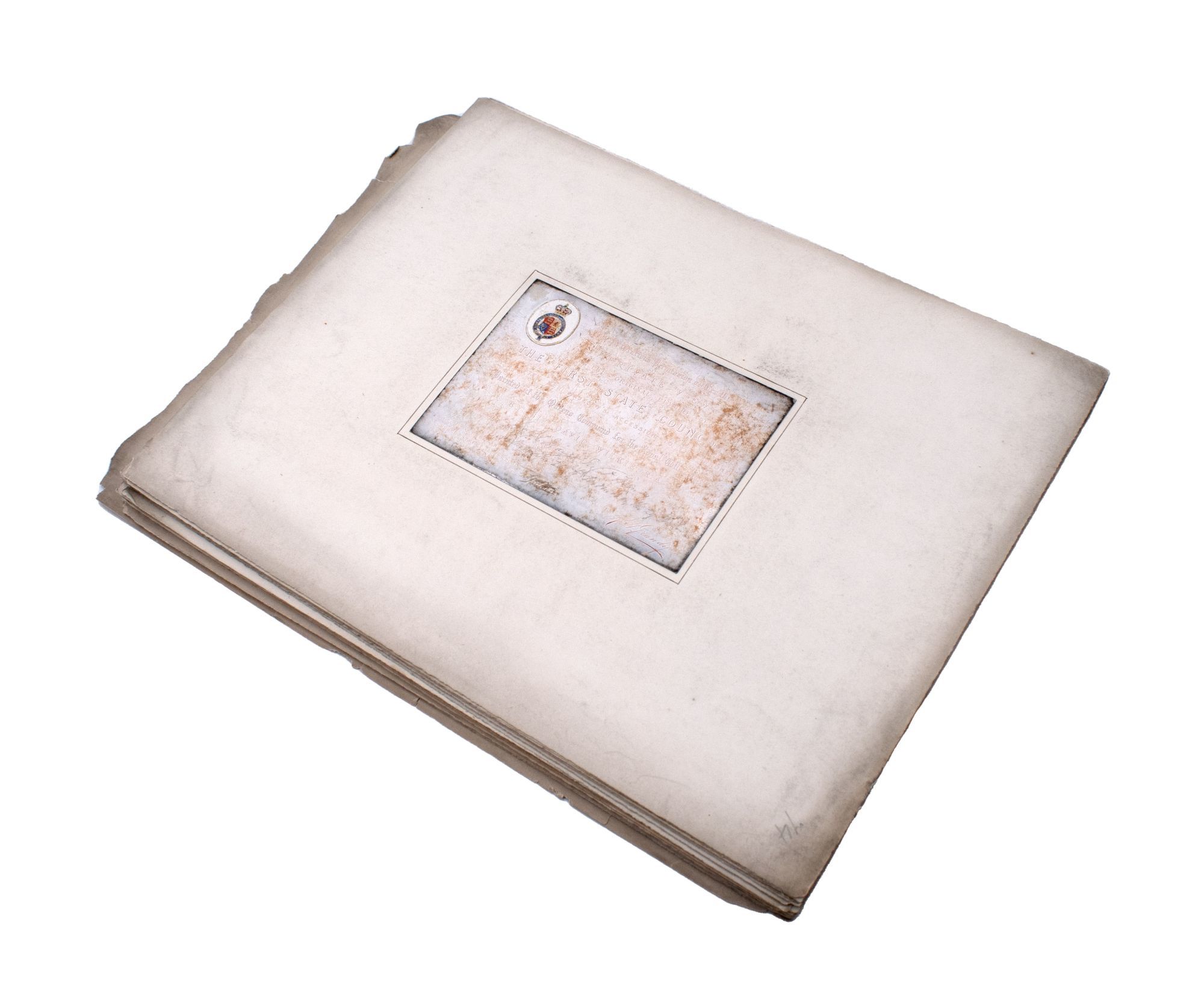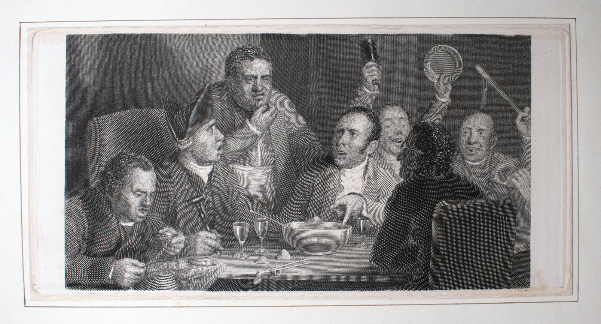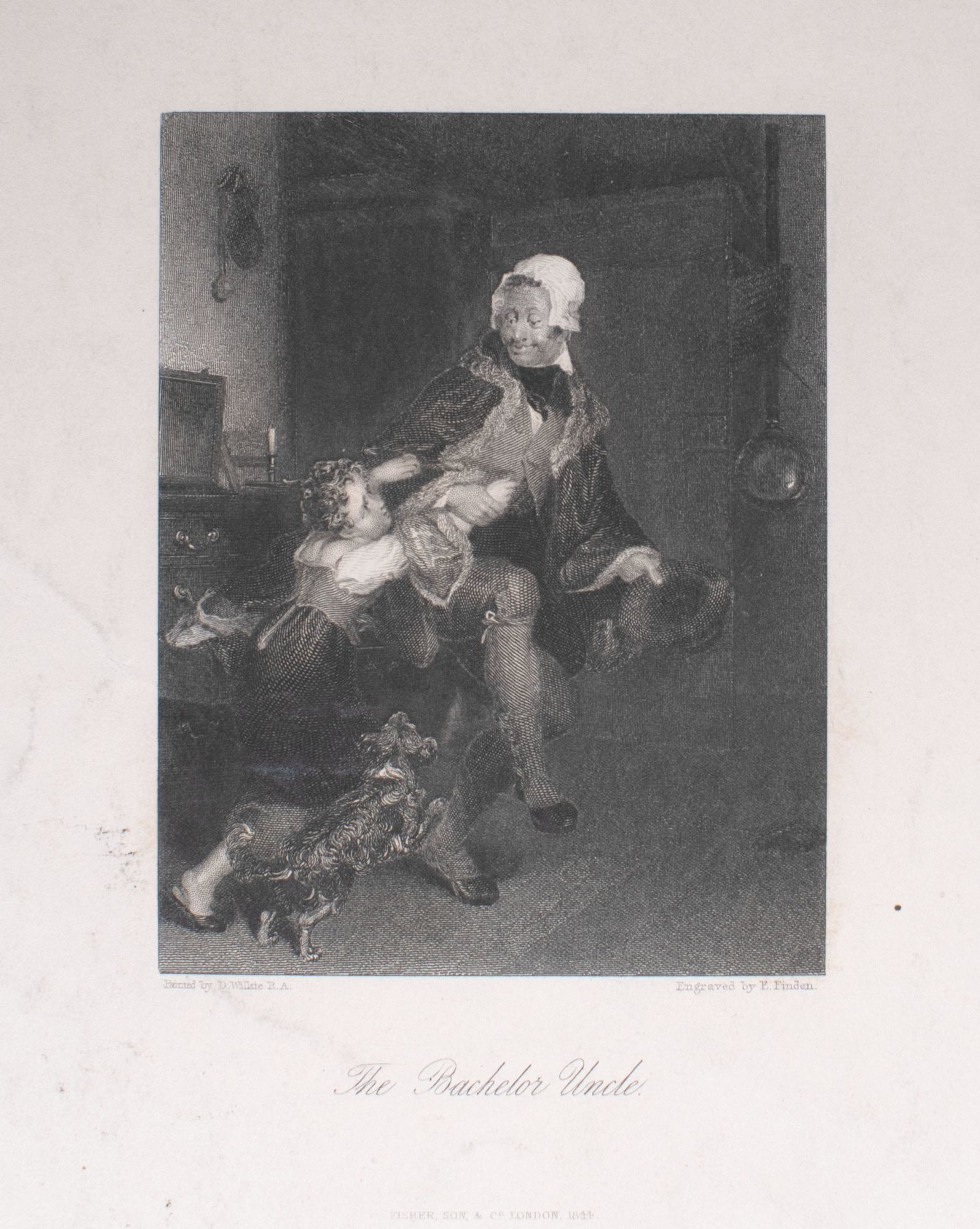 Also included is a pencil drawing of Sir Walter Scott (Wilkie painted 'The Abbotsford Family' in 1817 after visiting Scott, which incorporates Scott's family, friend, and dogs into a group portrait with Scott at the center); 11 lithographic prints; a selection of 13 plates with accompanying pages taken from the posthumous 'The Wilkie Gallery' ca. 1845; an announcement for 'John Knox Administering The Sacrament' engraved by J. Talfourd Smyth, from the unfinished picture by Sir David Wilkie, R.A.; a ticket to a lecture at the Royal Academy London, with Wilkie's manuscript signature, 1816; an Irish Lottery Ticket with the manuscript signature of Wilkie's father, 1790; a royal invitation to a private viewing of Wilkie's portrait of Queen Victoria's commissioned painting, 'The First State Council' (April 1844?); a certificate of purchase for 'The Chelsea Pensioners Reading the Gazette of the Battle of Waterloo', August 6, 1830.