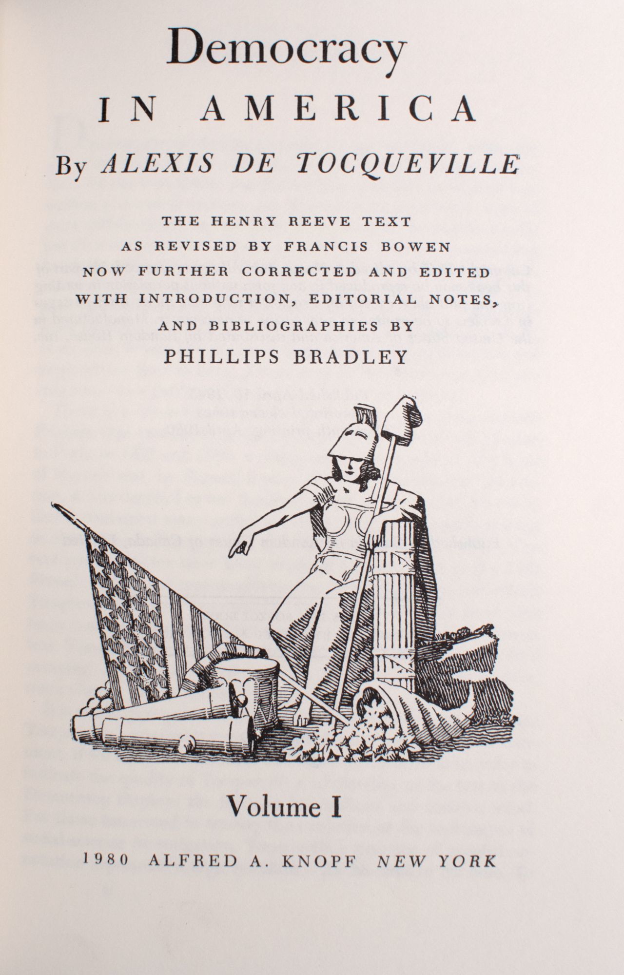 Democracy in America. The Henry Reeve Text as revised by Francis Bowen. Now further corrected and edited with introduction, editorial notes nd Bibliographies by Philip Bradley