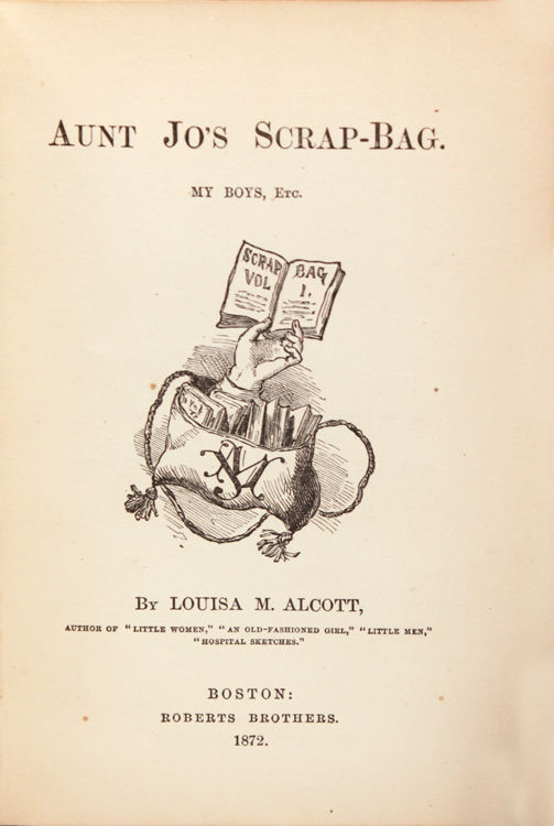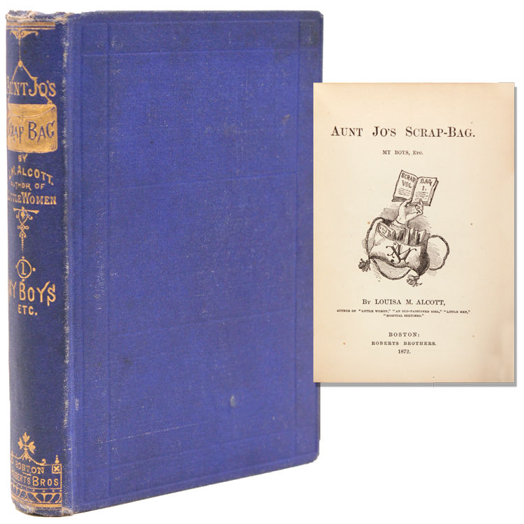 Boston: Roberts Brothers, 1872. First edition. Illustrated. 215pp. 16mo. Blue cloth, spine stamped in gilt. Owner's contemporary ink name on second front flyleaf, dated in year of publication ("Oct. 1872"). Cloth is lightly worn (with bit of fraying) at tips of spine, tips of corners rubbed, else a very good, bright copy, with gilt lettering on spine fresh and bright. First edition. Illustrated. 215pp. 16mo. BAL 168; issued as the first volume in the 'Aunt Jo's Scrap-Bag' series