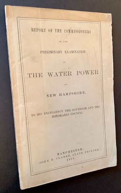 Manchester, NH: John B. Clarke, 1870. Original wraps. Very Good. The uncommon 1870 1st edition, including a large fold-out map ("Map Illustrating the River Basins of New Hampshire") in color (!!). Solid and VG in its beige wrappers, with light creasing and very light offsetting long the wrappers. Octavo, 79 pgs.