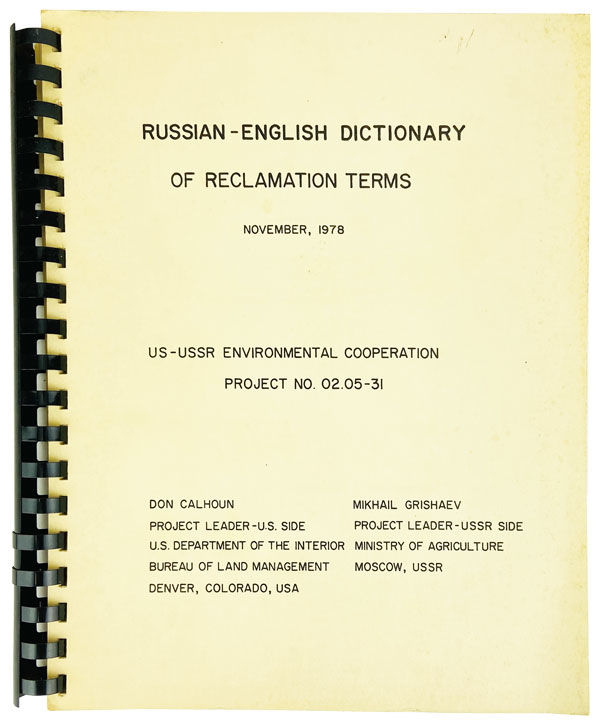 Washington, DC: Bureau of Land Management / Department of the Interior, 1978. Very Good. Washington, DC?: Bureau of Land Management / Department of the Interior, 1978. First Edition. Slim quarto; publisher's spiral-bound printed card wrappers; [4],172pp.; bilingual text printed in double columns. Wrappers a bit foxed and dust-soiled, else Very Good. Issued as US-USSR Environmental Cooperation Project no. 02.05-31.