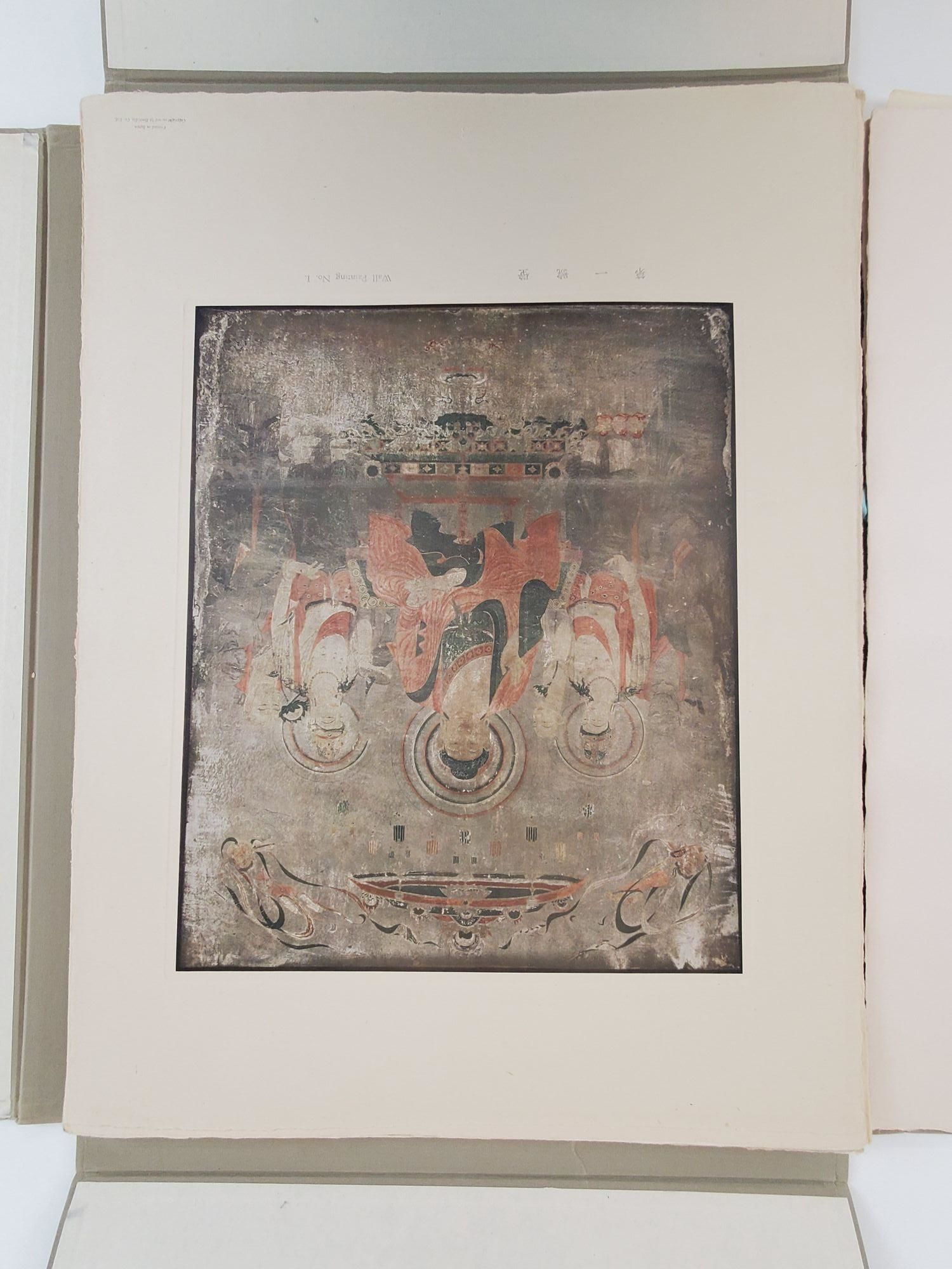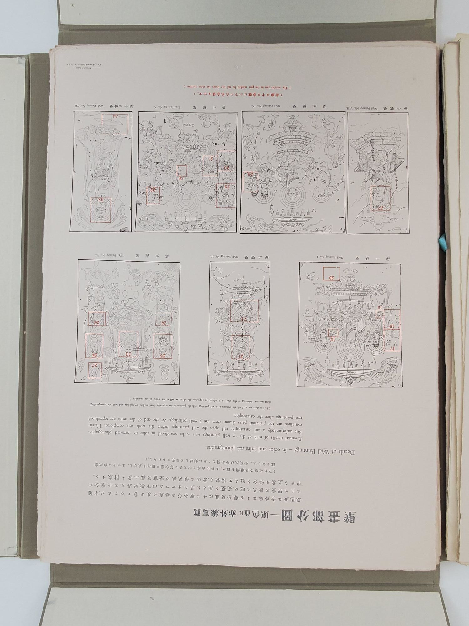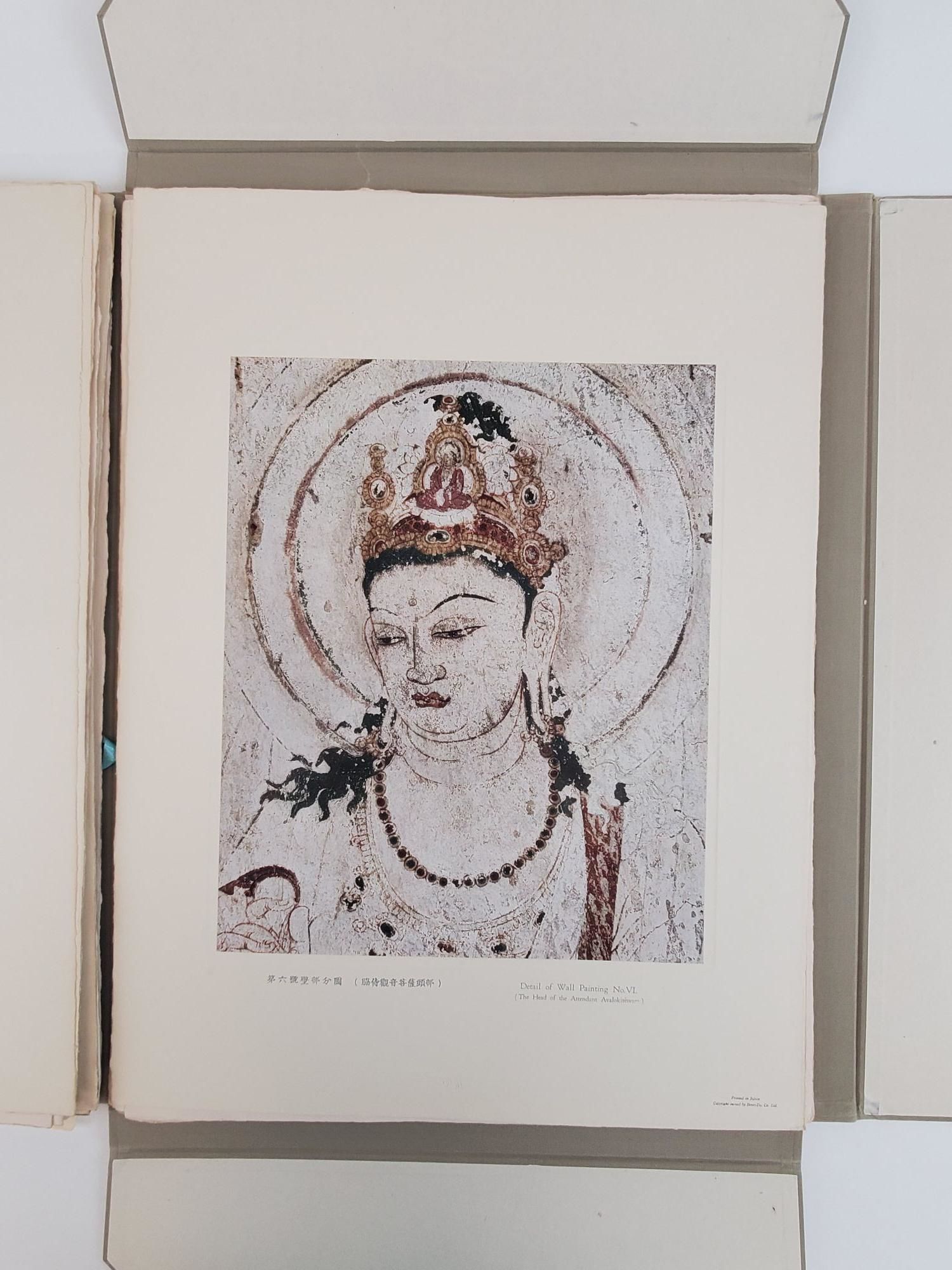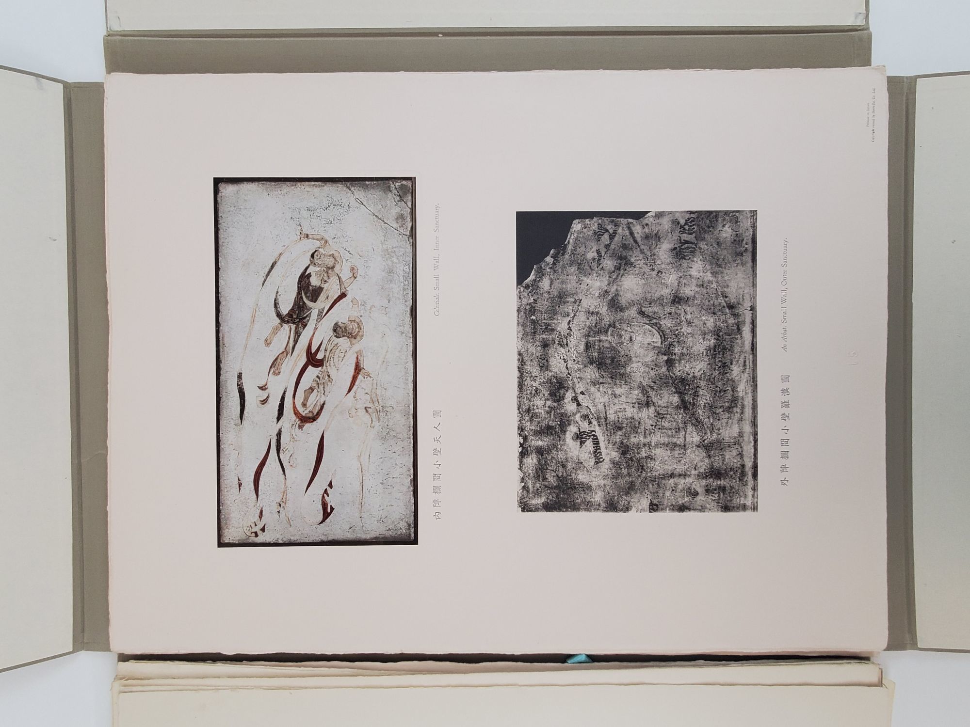 Tokyo: Benrido Publishing Company, 1951. Loose folio. Elephant folio, 11, [13] pages (explanatory booklet) plus title page, 4 leaves of preface and index, 36 plates, and 1 colophon leaf. In Very Good minus condition with Good plus case. Case half bound in grey cloth with green patterned paper boards and titling to front board and spine. Case significantly tuned and bumped, with fraying to corners; ribbon ties damaged, and bottom set no longer usable. Explanatory booklet shows light plus age toning and foxing. Plates show light plus age toning and bumping to edges. Profusey illustrated with photographs in black and white and color, along with site diagrams. Text in English and Japanese. SH Consignment. Shelved in Room A. 1363292. Special Collections.