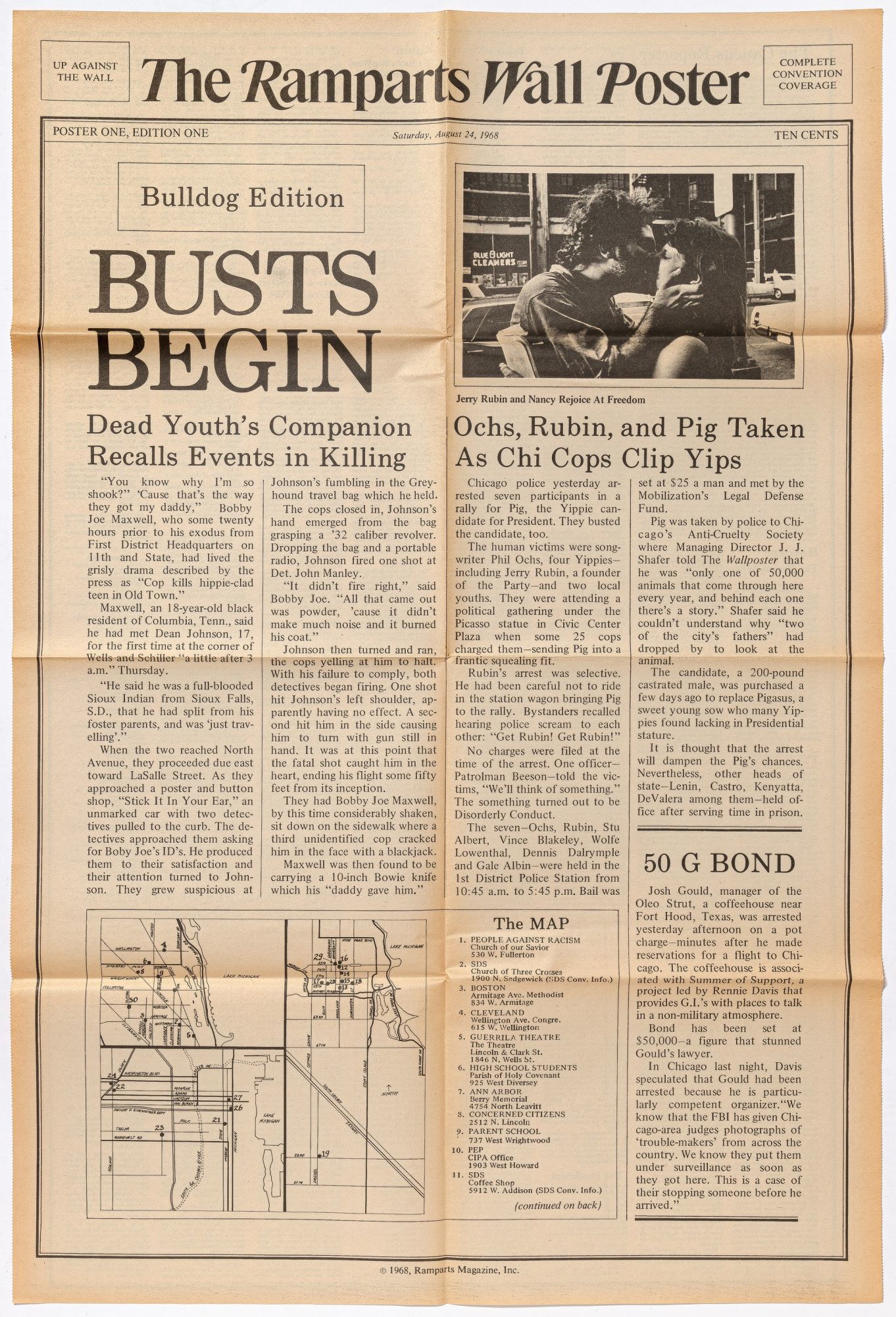 [Poster]: Bulldog Edition: Busts Begin [in] The Ramparts Wall Poster - Poster One, Edition One - Saturday, August 24, 1968
