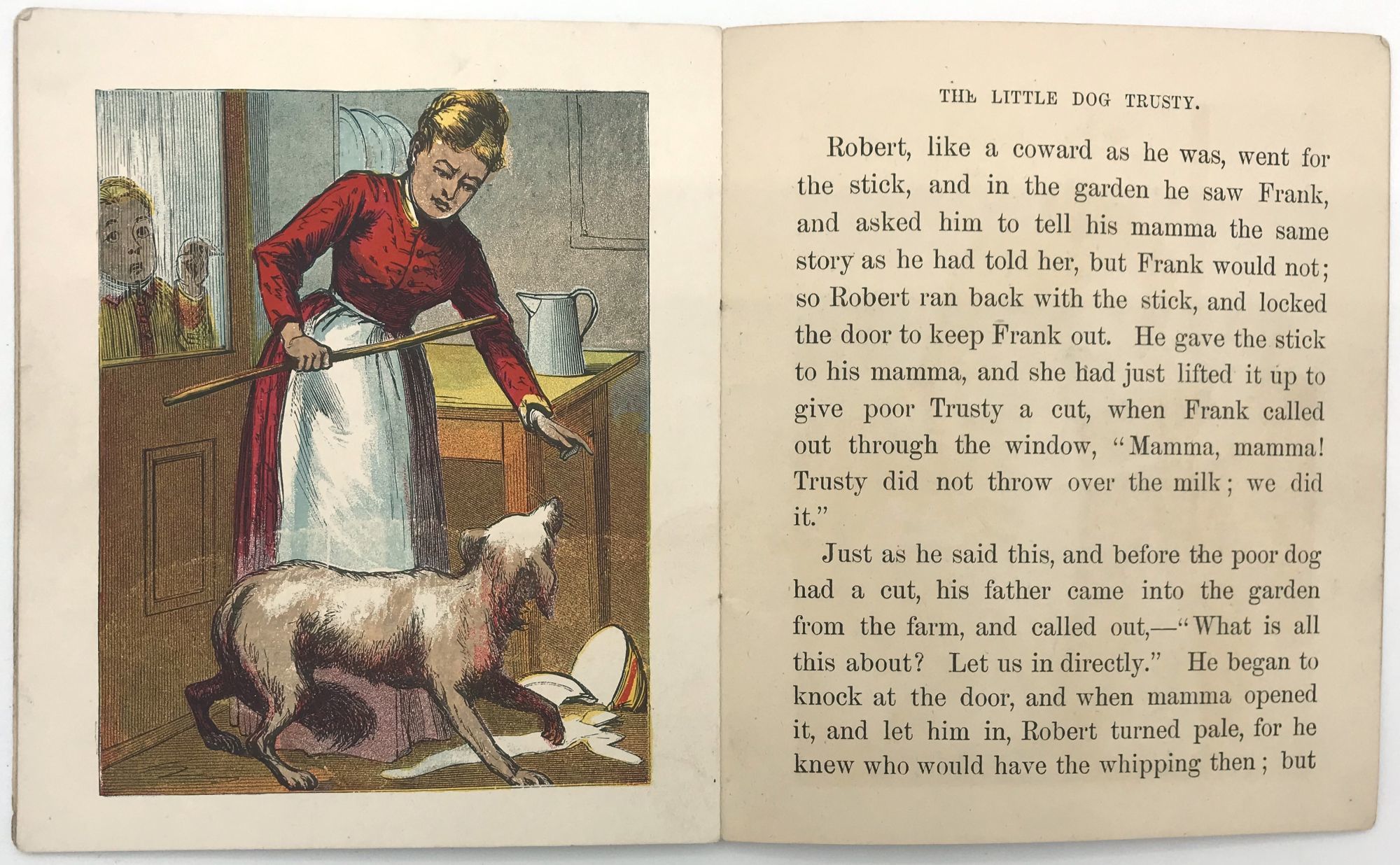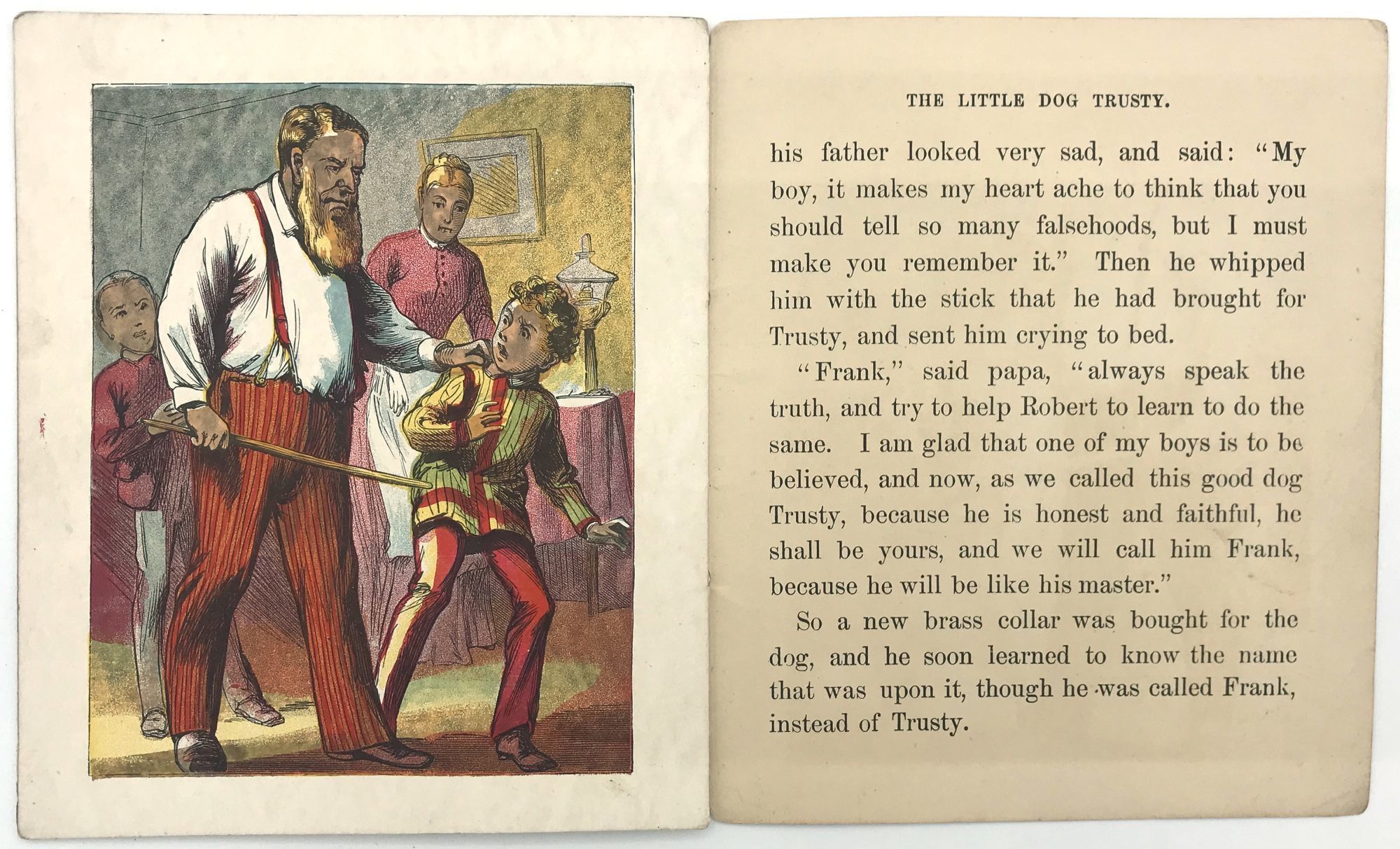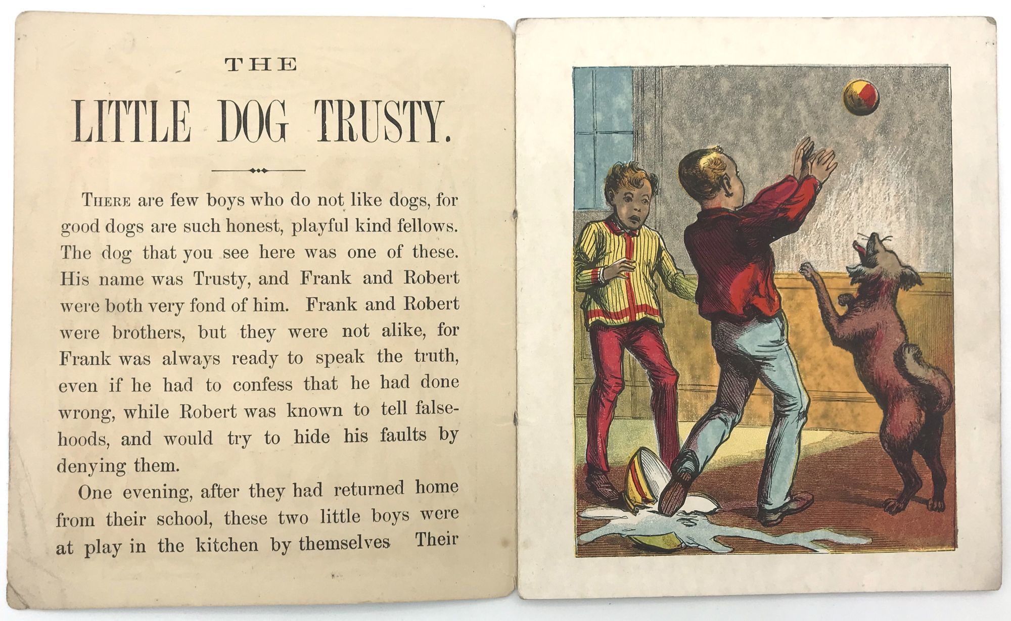 New York, New York: McLoughlin Bros, 1880. Fine to very fine; only minimal wear to extremities.. A fine, bright example of McLoughlin's children's story "The Little Dog Trusty", adapted from the same story by Maria Edgeworth. Part of McLoughlin's "Uncle Toby's Series", the book teaches children to be truthful and loyal.