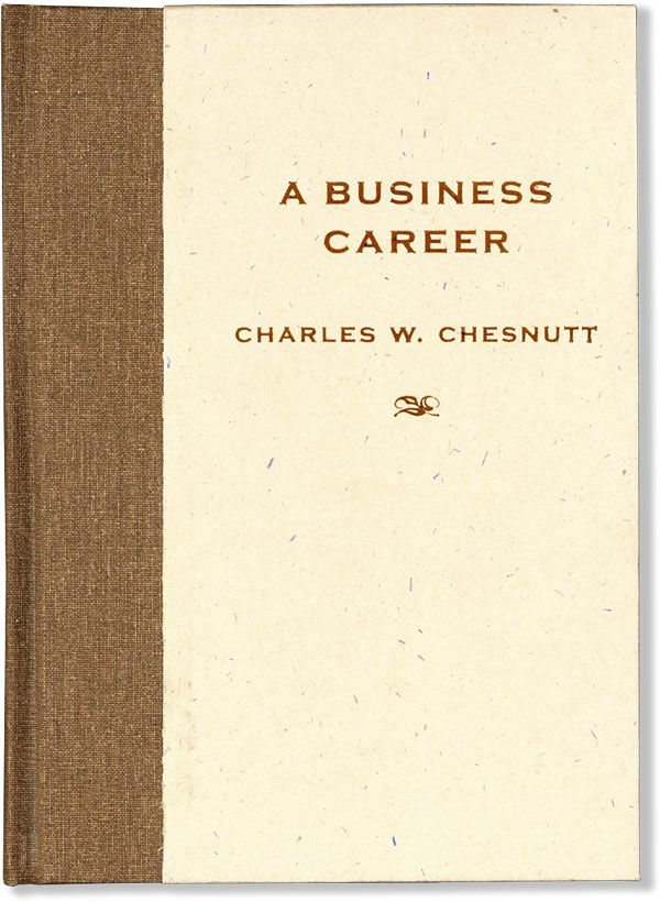 Jackson, MS: University Press of Mississippi, 2005. First Edition. Octavo (18.5cm); beige paper-covered boards and brown cloth backstrip, with titles stamped in copper on spine and front cover; xviii,218,[4]pp. Publisher's ISBN sticker on rear cover, else Fine. First printing of one of Chesnutt's "white-life" novels, which were left behind in manuscript at the time of his death. Set in a fictitious Midwestern city, the novel is a melodramatic tale centered around the romance of an older man and a younger woman. Edited by Matthew Wilson and Marjan A. Van Schaik.