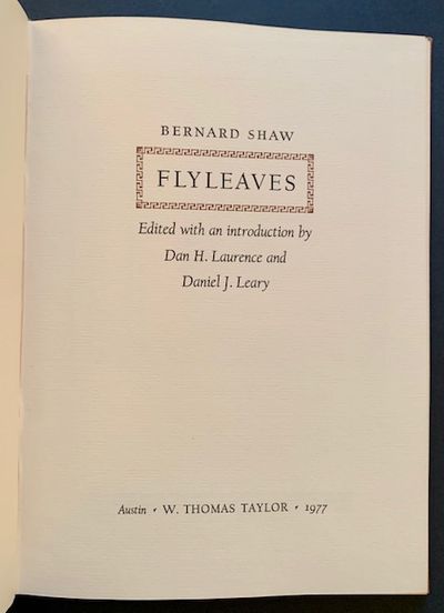 Austin, TX: W. Thomas Taylor, 1977. Cloth. Fine. A very sharp copy of the 1977 1st edition, one of only 350 copies issued. Clean and Fine in its russet cloth. Quarto, edited with an Introduction by Dan H. Laurence and Daniel J. Leary (whose personal copy this was). Beautifully printed and designed by Henry Morris at the Bird & Bull Press, North Hills, PA.