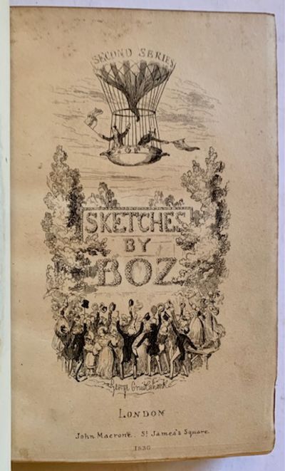 London: John Macrone, 1837. 3/4 leather. Very Good. Along with the "First Series" of "Sketches by Boz", this, the "Second Series" (here offered by itself), constitutes Dickens' first published book. The 1st issue of the 1837 1st edition, with the 20-page publisher's catalogue dated December 1836 at the rear. Tight and VG in its custom 3/4 dark morocco over marbled boards (a handsome "Tout" binding). Tasteful bookplate at the first blank endpaper, light wear to the outer hinges, very mild flaking along the spine. Light scuffing and rubbing along the panels as well. Still though, very presentable and well-preserved. 12mo, top-edge gilt.
