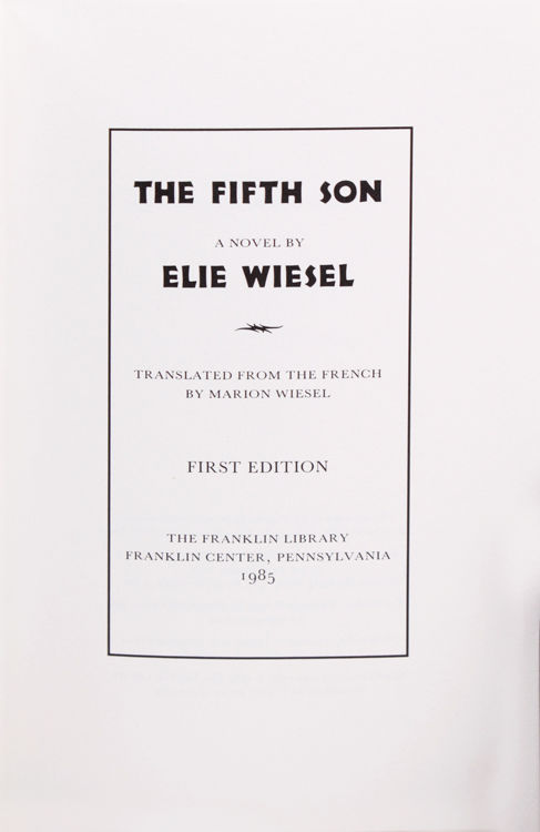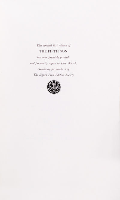 The Fifth Son. A Novel. Translated from the French by Marion Wiesel. With a special message for the first edition from the author