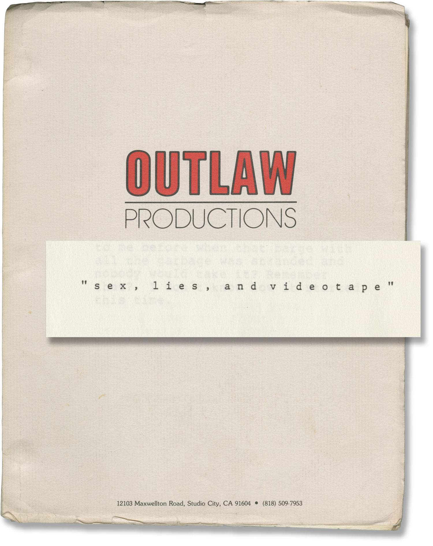 White untitled Outlaw Production wrappers. Title page present, dated 21 FEB 88, noted as second draft, with credits for screenwriter Steven Soderberg. 95 leaves, with last page of text numbered 94. Xerographic duplication, rectos only. Pages Near Fine, wrapper Very Good plus, bound internally with three gold brads.