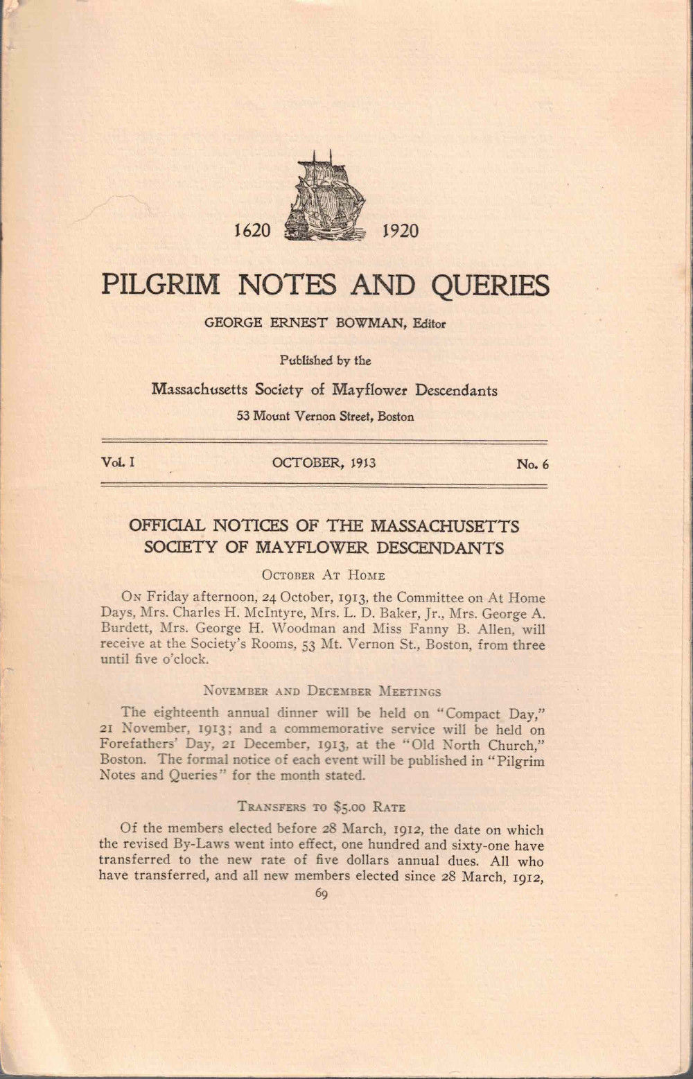 Pilgrim Notes and Queries October 1913, Vol. I No. 6