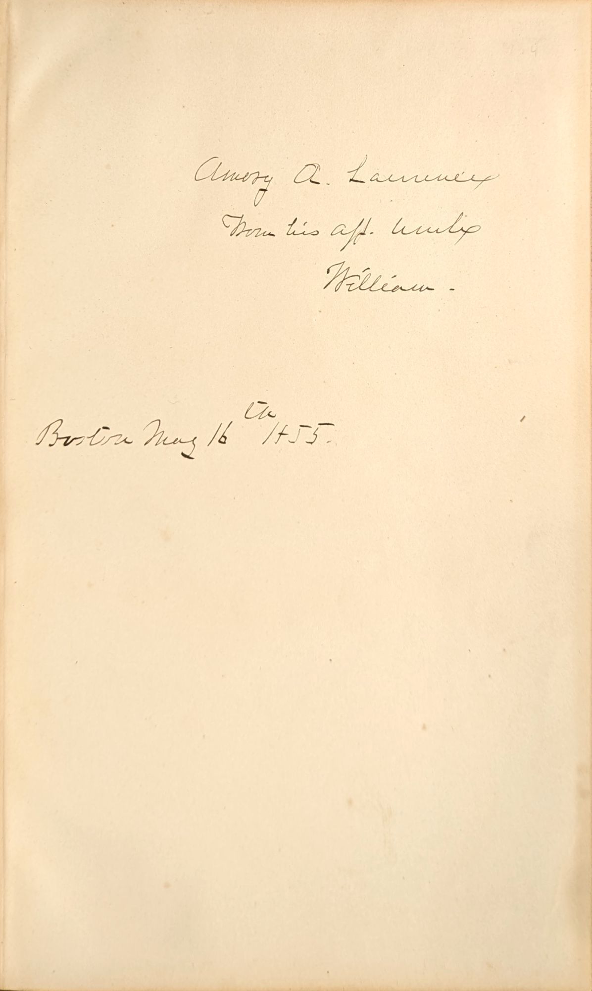 Boston: John Wilson & Son, 1855. Very Good. Boston: John Wilson & Son, 1855. First Edition. Signed by the editor (Amos' son) on flyleaf to his nephew with inscription "Amory A. Lawrence, From his aff. uncle William. Boston May 16th 1855"