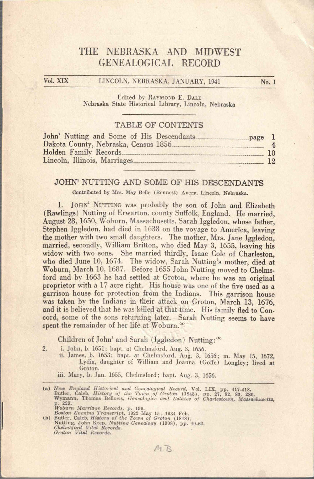 The Nebraska and Midwest Genealogical Record Vol. XIX, No. 1, January 1941