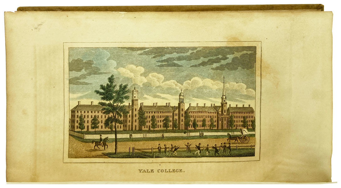 New Haven: J.W. Barber, 1831. Very Good. New Haven: J.W. Barber, 1831. First Edition. 12mo (20cm.); publisher's tan cloth, black gilt-lettered leather spine label; 120pp.; hand-colored map frontispiece, six leaves of hand-colored plates (tissue guards), woodcut vignettes throughout. Corners bumped, spine a bit cocked and leather label scuffed, light foxing throughout textblock, else a Very Good, sound copy overall. Addenda cancel tipped in to p. 9 dated 1832.