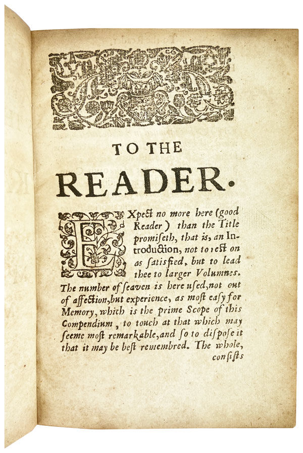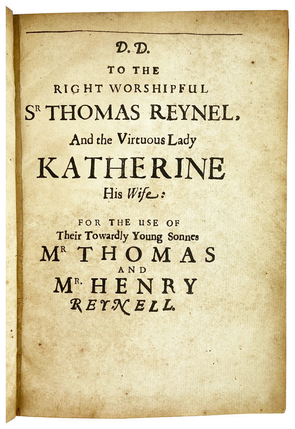 Oxford: Leon. Lichfield / James Good, 1672. Very Good. Oxford: Leon. Lichfield, Printer to the University, and are to be sold by James Good, 1672. "Fifth Edition, Corrected and Augmented, and three usefull Indexes added." Small quarto (20cm.); full 19th century parchment, maroon gilt-lettered spine, all edges stained red, later marbled endpapers; [8],256,[2],257-350,[38],57,[1],58,[3]pp. ([*]4 A-3B4 3C2 A-H4). Minor dust-soil to boards, corners gently bumped, textblock uniformly toned, 19th century ownership signature and 20th century ownership rubberstamp to front flyleaf, contemporary ownership signature to title page, else Very Good, internally clean and sound.