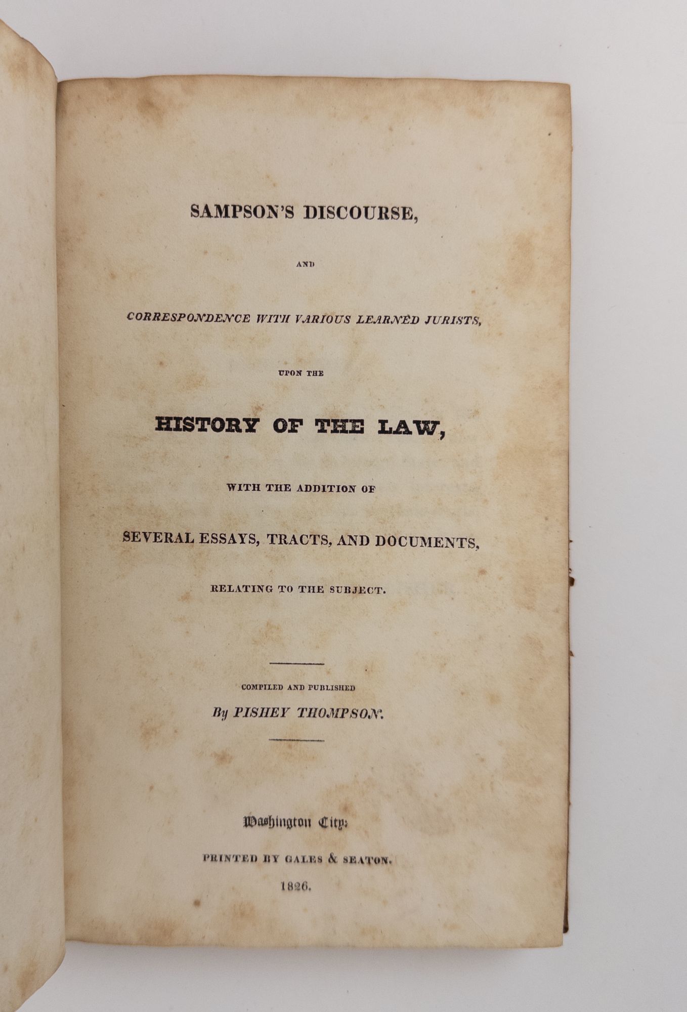 SAMPSON'S DISCOURSE, AND CORRESPONDENCE WITH VARIOUS LEARNED JURISTS, UPON THE HISTORY OF LAW, WITH THE ADDITION OF SEVERAL ESSAYS, TRACTS, AND DOCUMENTS, RELATING TO THE SUBJECT