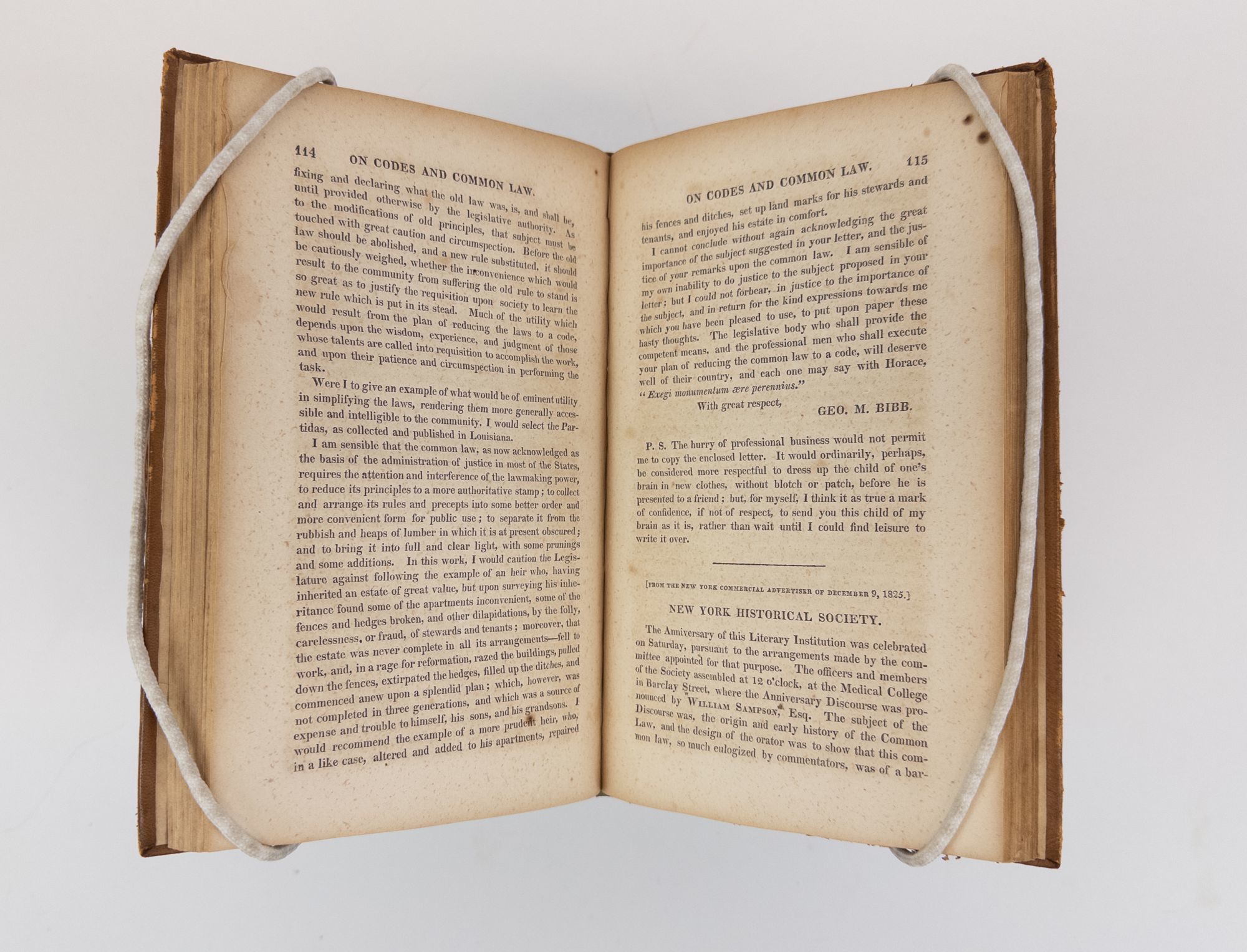 Washington City: Gales & Seaton, 1826. Presumed First Edition. Hardcover. Small quarto (5.5 in. x 8.75 in.), viii, 202 pages. In Good condition. Boards bound in full sheepskin with worn black leather label and faded gilt lettering. Leather peeling away from boards and spine, moderate rubbing and bending to corners, and moderate shelf wear to boards. Moderate plus age toning to text block edges, mild age toning to interior of text block, moderate plus uneven foxing throughout pages, and front end page has been excised with small remnant remaining. RWO Consignment. Shelved in Room G. 1364419. Special Collections.