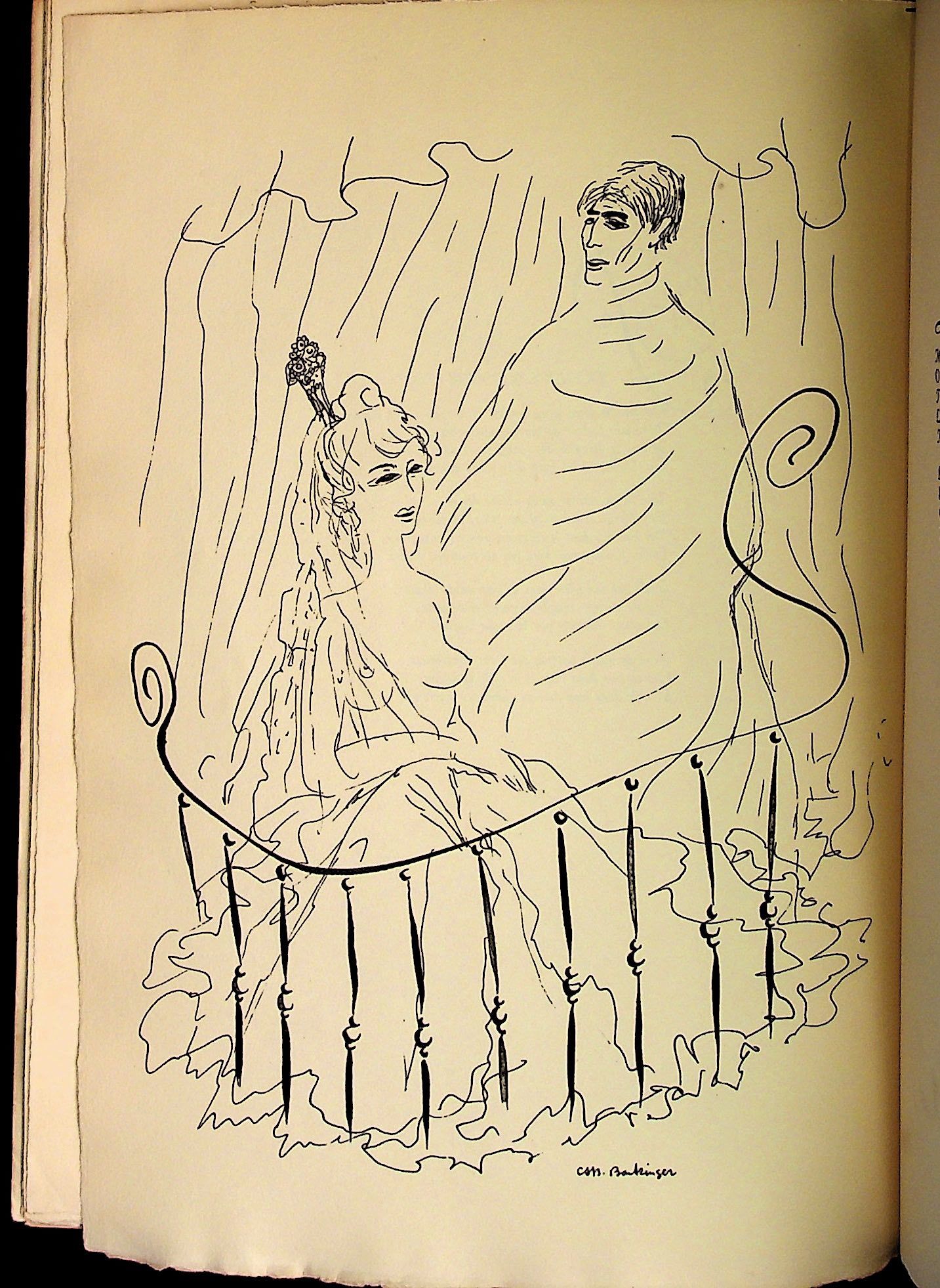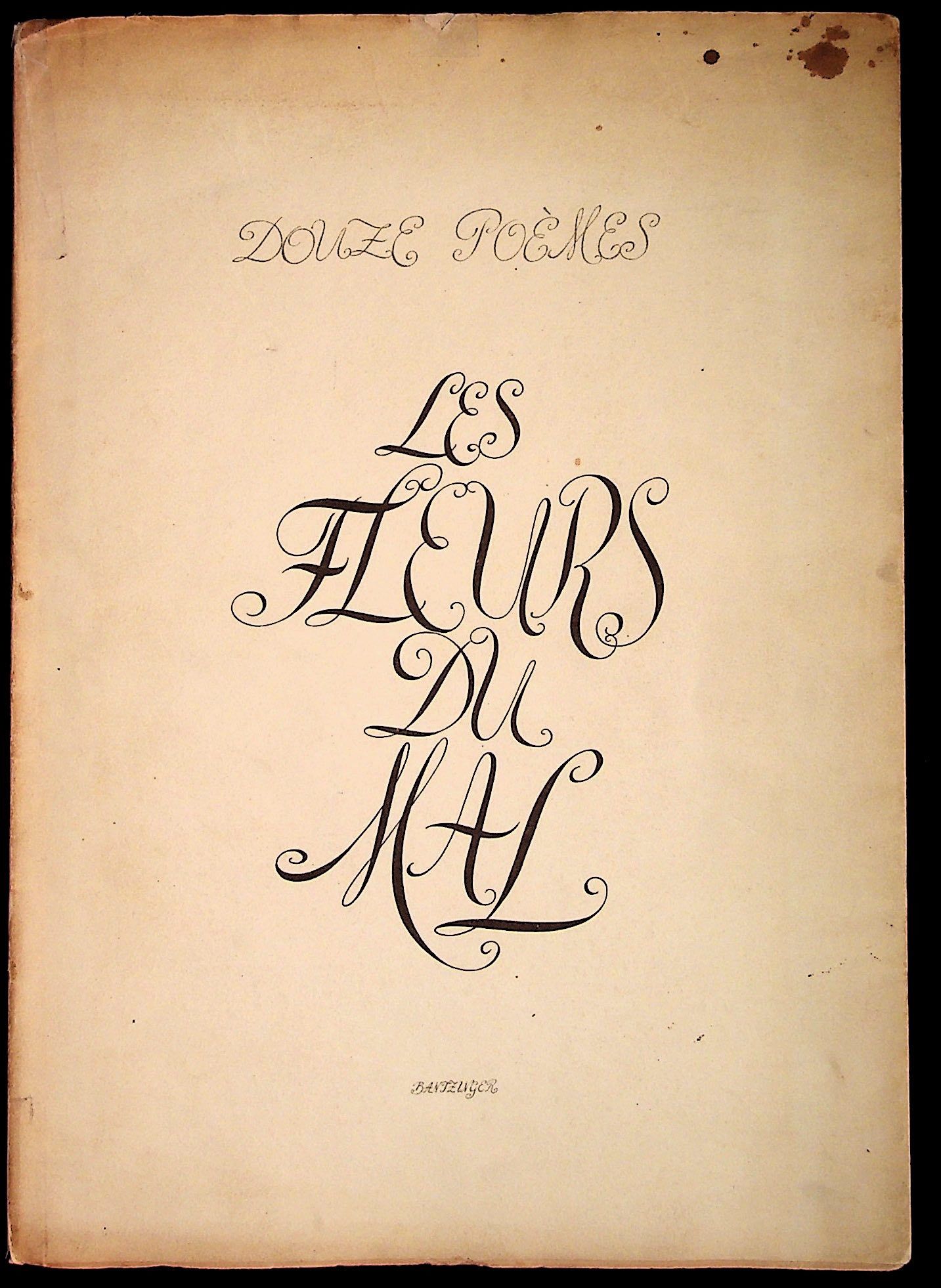 La Haye: D.A. Daamen, 1939. Paperback. Very Good. Paperback. Number 221 of 500 copies. With full page erotic illustrations by Bantizinger, in a style similar to Matisse. In cream paper wrappers with black title to front wrapper. Tape repair to front wrapper near front joint. Chipping and browning to wrappers and spine panel. A few spots of soiling to wrappers. Clean, bright interior with full page (mostly erotic) illustrations for each of the 12 poems. IN FRENCH. Size: Thin folio. About 13.75 x 9.75 inches. FRE/021323.
