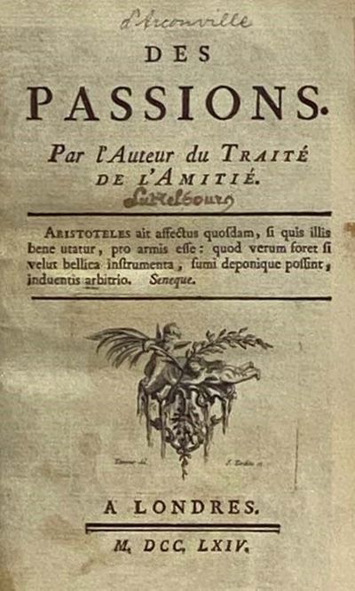 A Londres [Paris]: S.N, 1764. Full-Leather. Good/No Jacket. Boards rubbed with some loss of gilt on spine and front, a few pages lightly stained along corners, ink name on title page. 1764 Full-Leather. viii, 221, [1] pp, French text. Full leather, gilt titles and decorations. Engraved frontispiece, one engraved plate in text. An anonymous work by the French novelist, translator, and chemist, preceding her best known work Essay on the History of Putrefaction (1766), a study of plant and animal matter rot embarked upon to better understand gangrene. This work discusses love and ambition, their dangers in excess, and the importance of friendships for measured thinking and behavior.