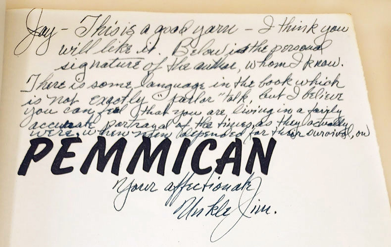 Garden City: Doubleday & Company, Inc, 1956. First edition. Hardcover. Very good/very good. SIGNED. 319pp. Octavo [22 cm] Tan cloth with a black ink stamped title on the spine. Illustrated endsheets. Bookplate on the front pastedown and a lengthy gift inscription on the title page. Price-clipped jacket is nicked at the corners. The nineteenth-century conflict between the Hudson's Bay Company and the North Westers, the Pemmican War, is the background for this historical novel.