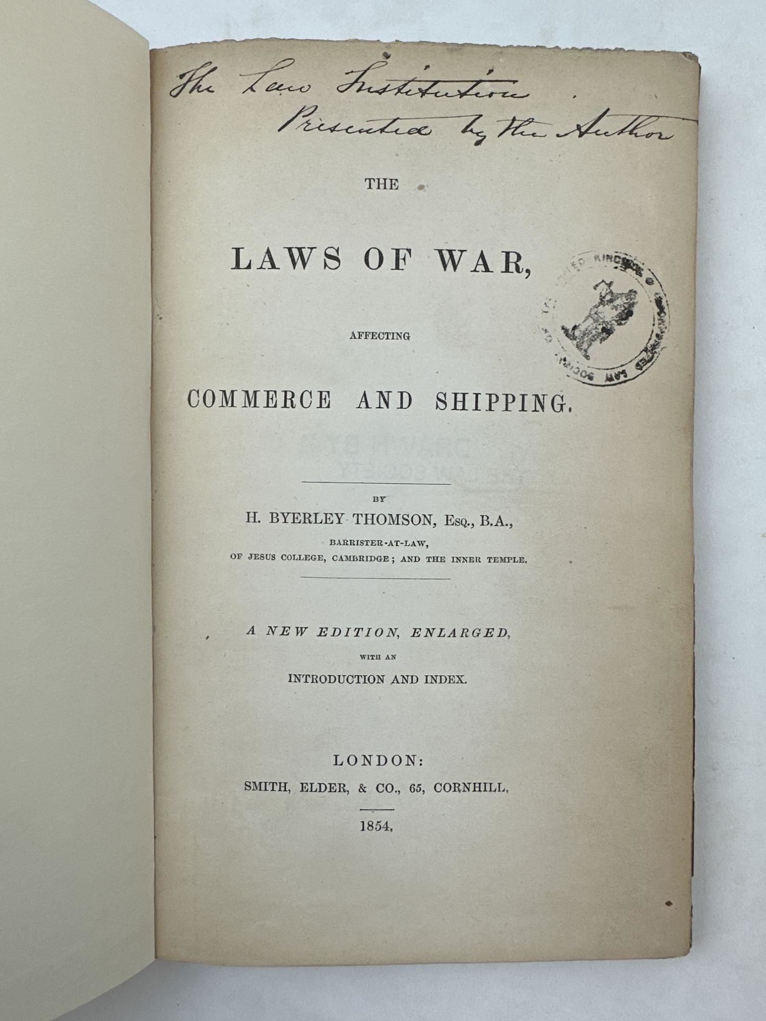 THE LAWS OF WAR, AFFECTING COMMERCE AND SHIPPING. [Presentation Copy]