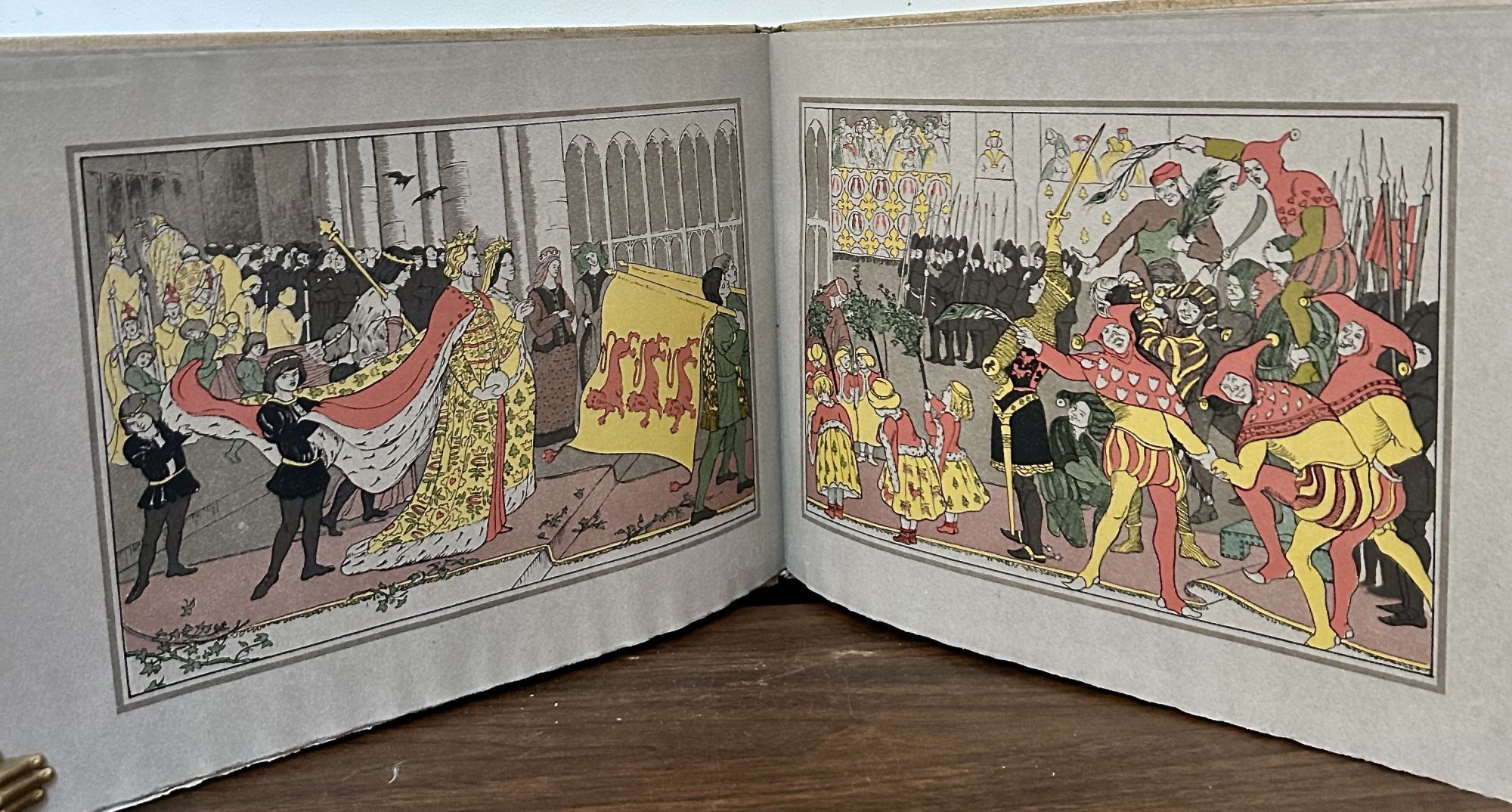 London: Essex House Press (Edward Arnold), 1902. First edition. Hardcover. Orig. beige cloth front cover lettered in black. Very good. 45 pages. Oblong folio, 29 x 39 cm. Limited edition, copy 16 of 300 with color lithograph illustrations after Edith Harwood of which 17 are full-paged. Ashbee created the Essex House Press after Morris's Kelmscott Press closed in 1897, taking on many of the displaced printers and craftsmen. Between 1898 and 1910 the Essex House Press produced more than 70 titles. Ashbee designed two type faces for the Press, Endevour (1901) and Prayer Book (1903), both of which are based on Morris's Golden Type. Printed on gray stock in black and red. Rubbing to backstrip foot and front cover lower corner.