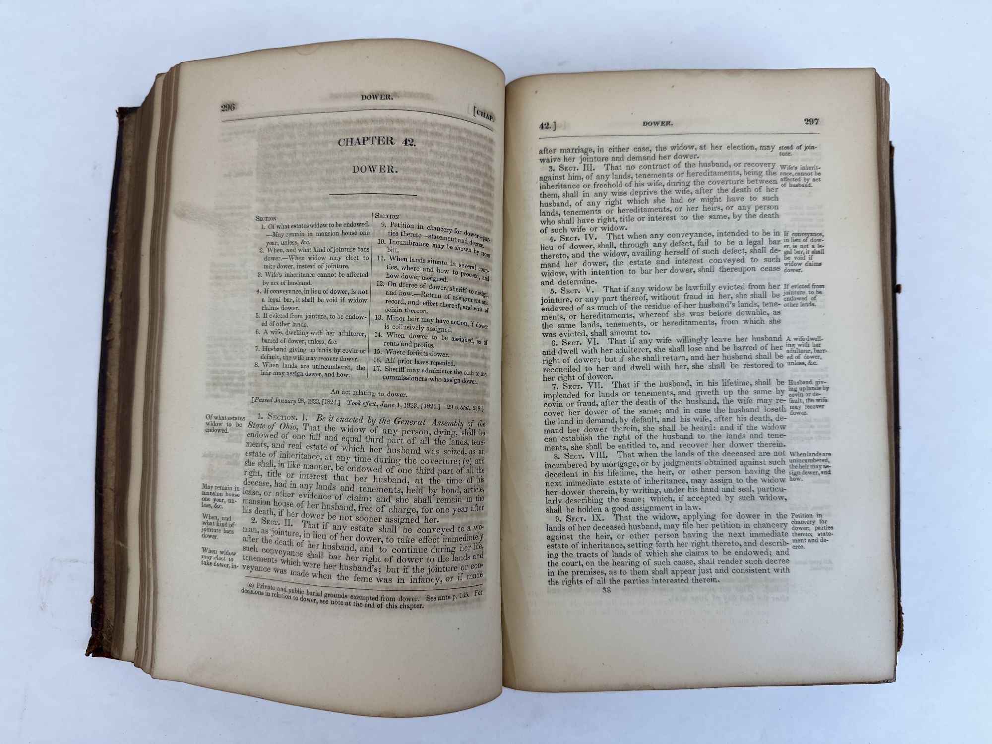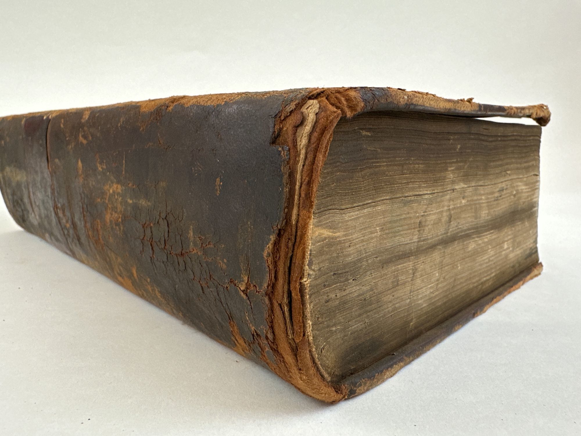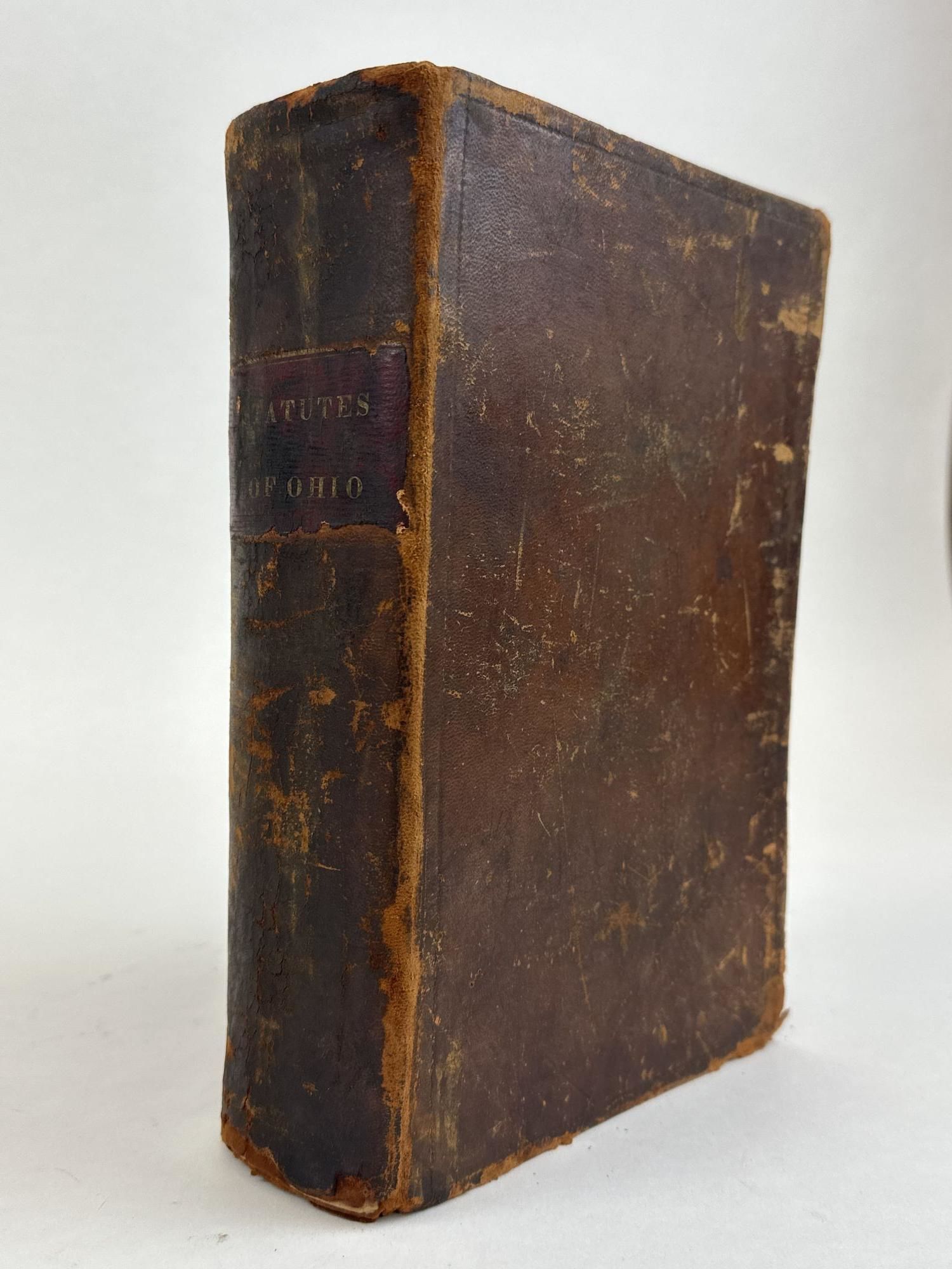 Columbus: Samuel Medary, 1841. Hardcover. Octavo, xv, 1111 pages; G-; Fully bound in leather with red label and gilt lettering to spine; Boards have blindtooling along edges and moderate toning and shelfwear overall, with edgewear, bumping to corners and abrasions to front and back cover, moderate toning and wear to spine with cracking, rubbing, and chipping to head/tail; Textblock shows signs of water damage and moderate age toning to edges (through p.265 and p.1000-1111), otherwise light to edges, and moderate foxing to paste downs, otherwise light+ throughout interior. RWO. 1364814. Special Collections.
