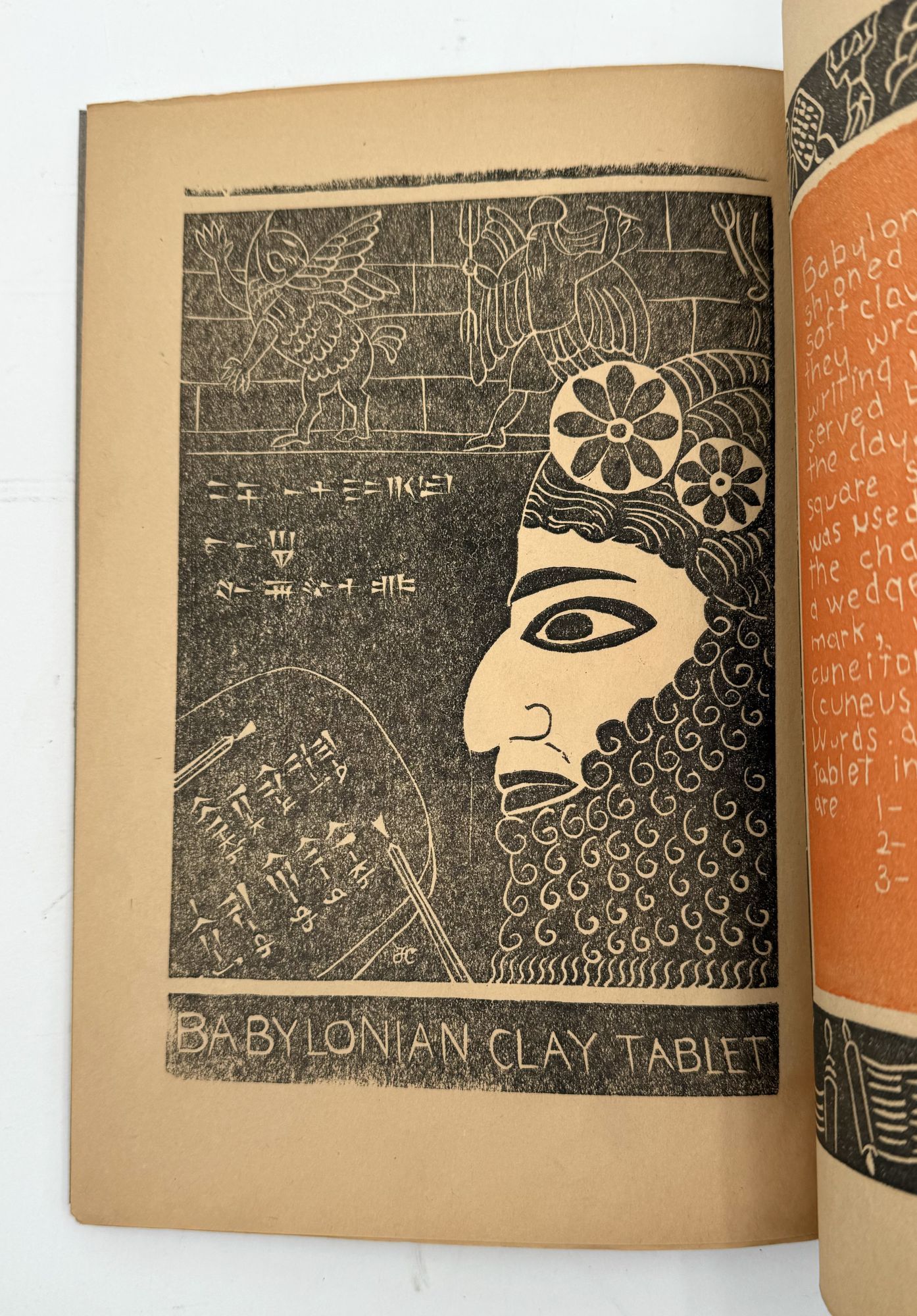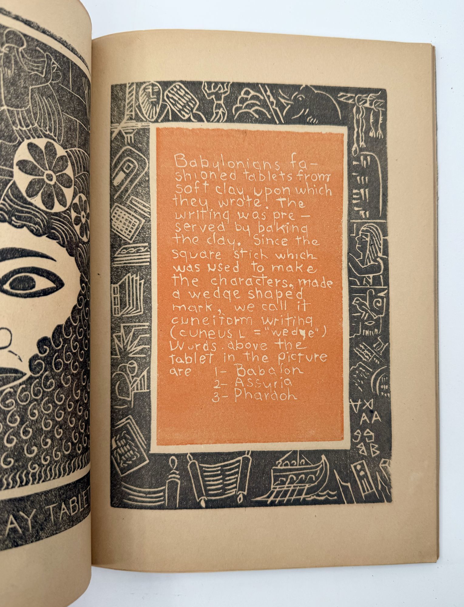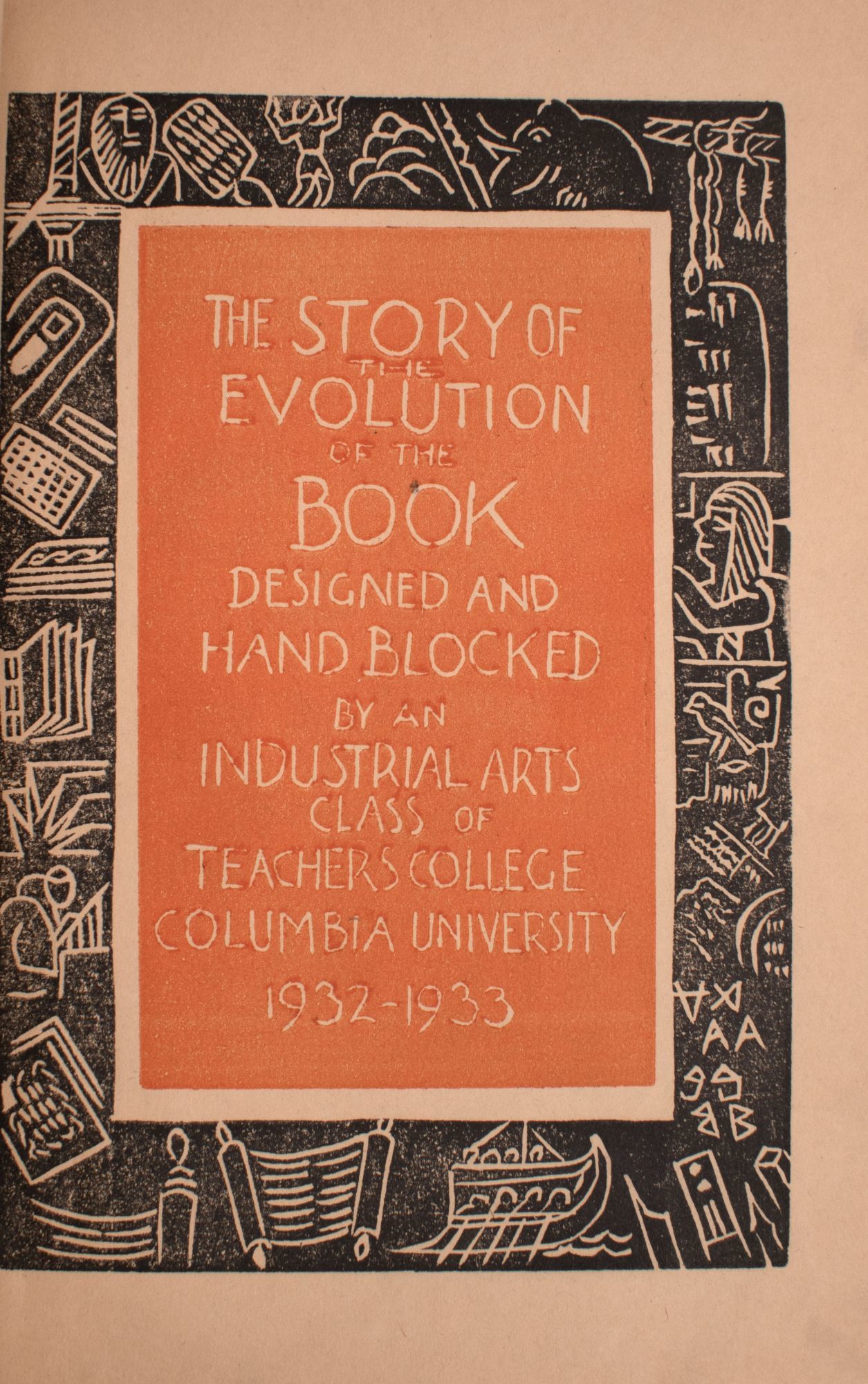 The Story of the Evolution of the Book. Designed and Hand Blocked by an Industrial Arts Class of Teacher's College Columbia University: 1932-1933