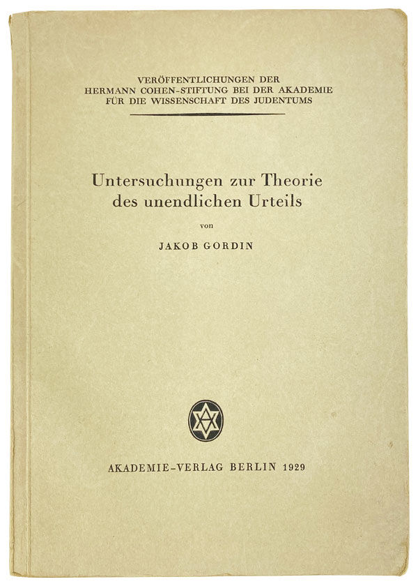 Berlin: Akademie-Verlag, 1929. Very Good. Berlin: Akademie-Verlag, 1929. First Edition. Octavo; publisher's grey card wrappers; [6],vi,167pp. General wear from handling, later (1990) ownership signature to half title, else Very Good and sound. At head of title: "Veröffentlichungen der Hermann Cohen-Stiftung bei der Akademie für die Wissenschaft des Judentums.