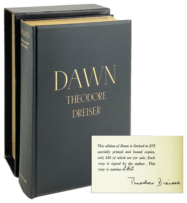 New York: Horace Liveright, Inc, 1931. Near Fine. New York: Horace Liveright, Inc., 1931. Limited Edition of 275 copies signed by Theodore Dreiser at limitation, this being #262. Large octavo. 589 pp. Black cloth with beveled edges stamped in gilt; gilt topstain. Housed in publisher's slipcase with title label to front.