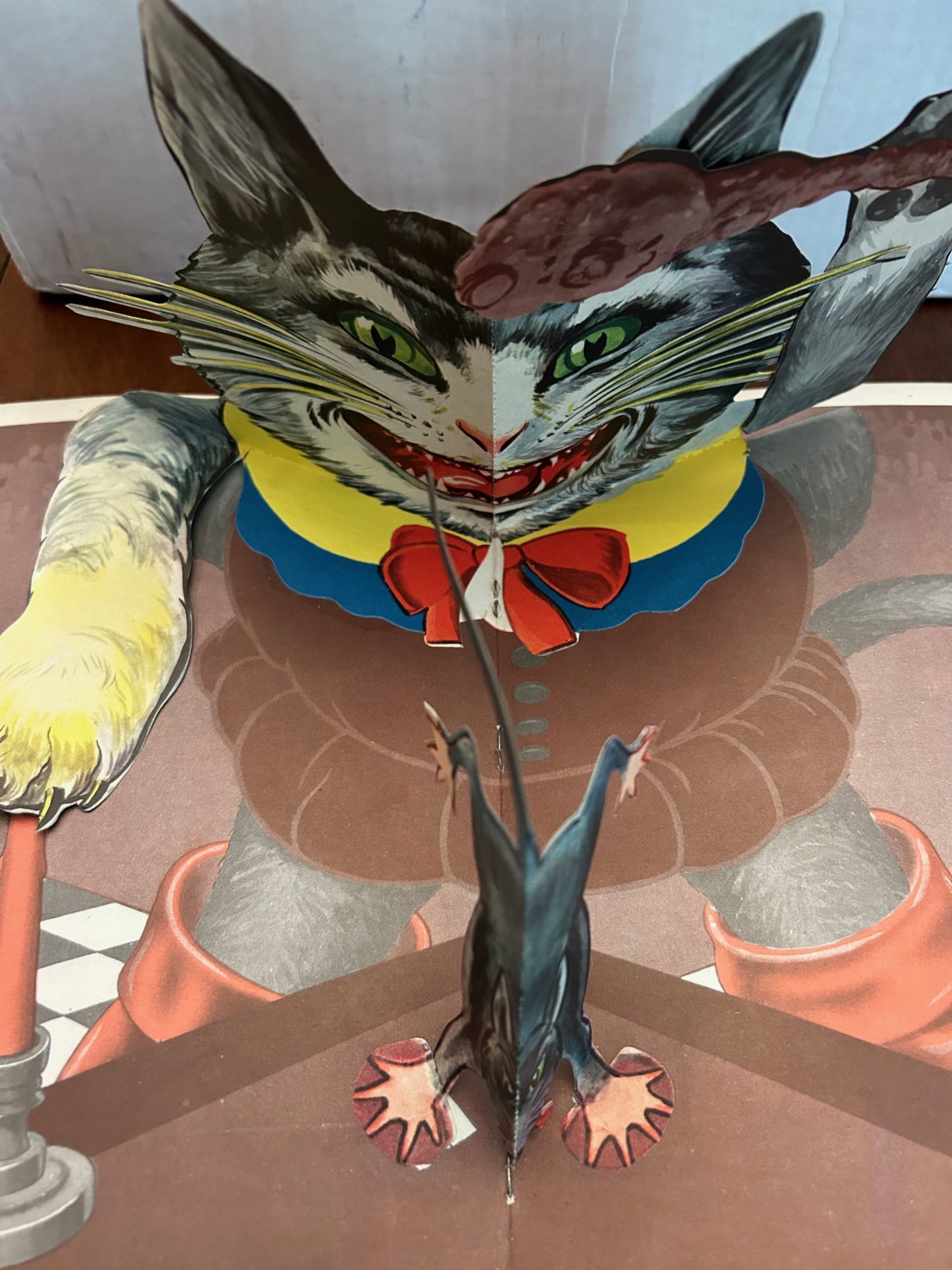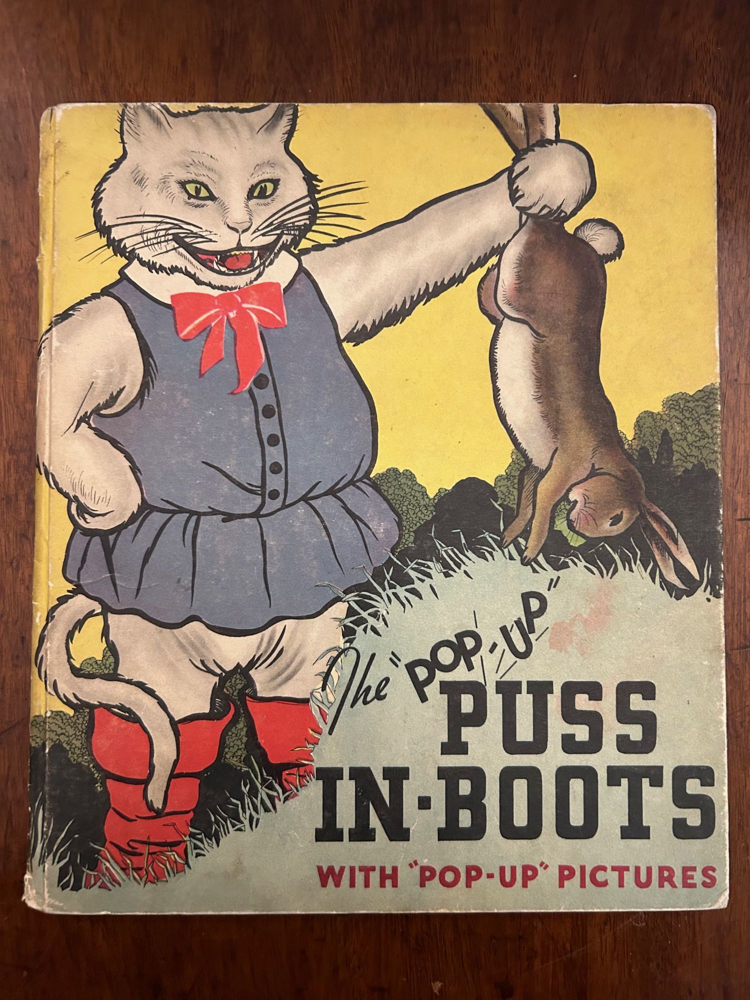 New York: Blue Ribbon Press, 1934. Illustrated pop-up edition. Original Wraps. Very Good+. Illustrated pop-up edition. Original Wraps. Classic story of Puss in Boots illustrated by Harold Lentz in pop-up form and black and white text with illustrations. Harold Lentz was an advertising and children's pop-up book illustrator, also the paper engineer for other books as, "Pinocchio," "Jack the Giant Killer," and "Little Red Riding Hood." Bound in original illustrated boards with pop-up end pages, 1 volume (unpaged), 8 vo, some edge wear, little soiling, else tight, bright, and unmarred. All paper engineering in excellent condition. Inscription on title page. No dust jacket, as issued.