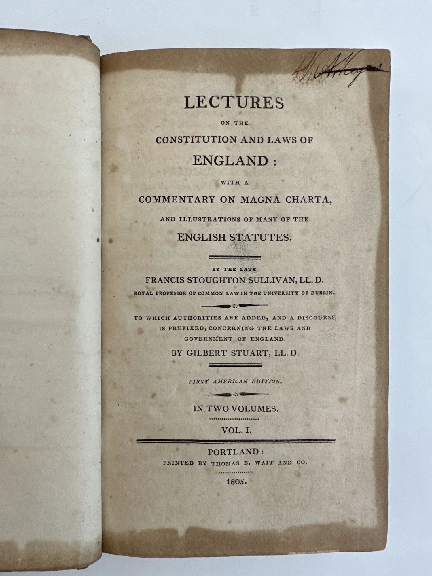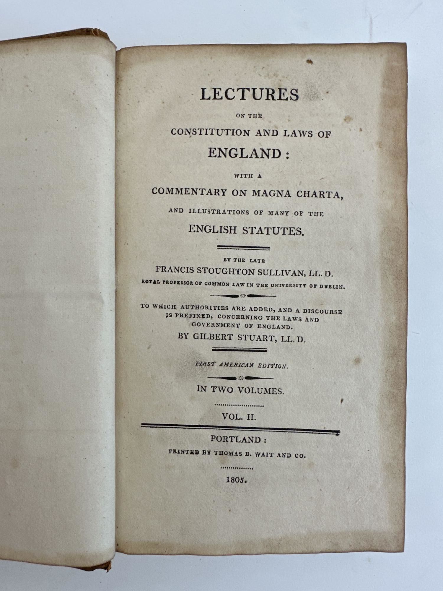 LECTURES ON THE CONSTITUTION AND LAWS OF ENGLAND: WITH A COMMENTARY ON MAGNA CHARTA, AND ILLUSTRATIONS OF MANY OF THE ENGLISH STATUTES. [TWO VOLUMES]