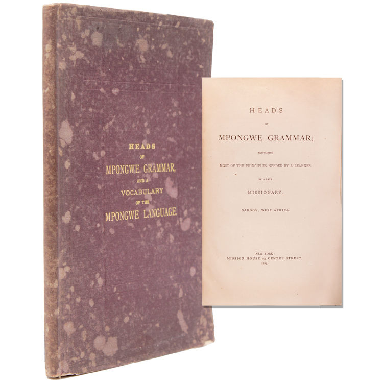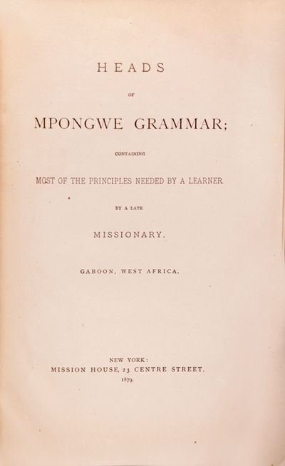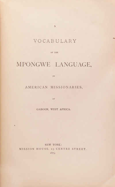 New York: Mission House 23 Centre Street, 1879. First Edition. 59; 54pp. 8vo. Original cvloth, staining to covers, fine internally. First Edition. 59; 54pp. 8vo. A Gabonese language.