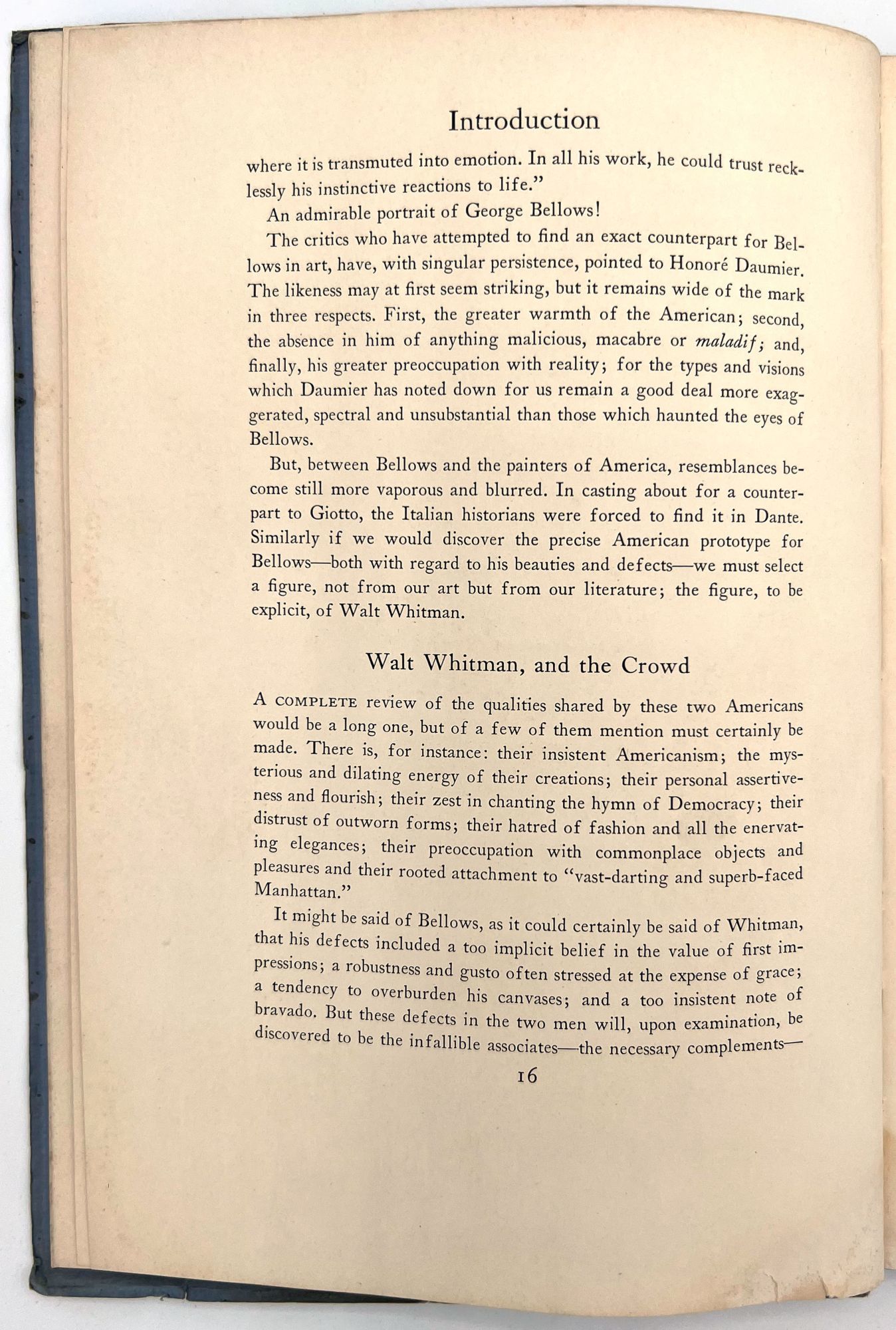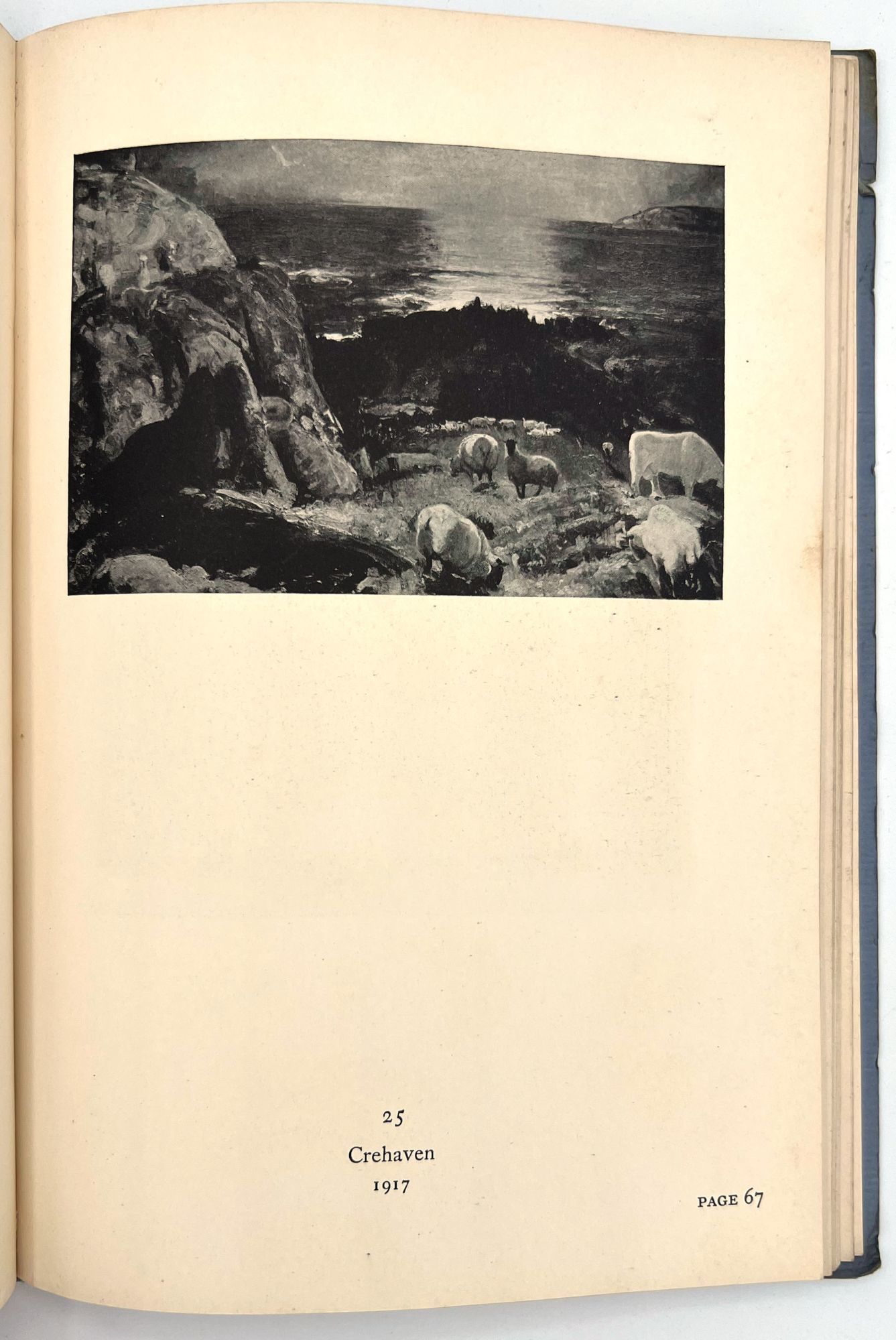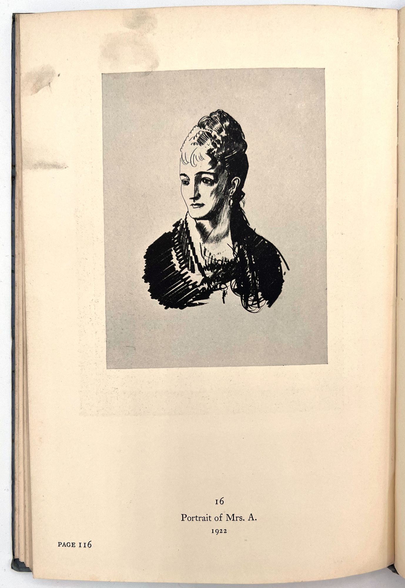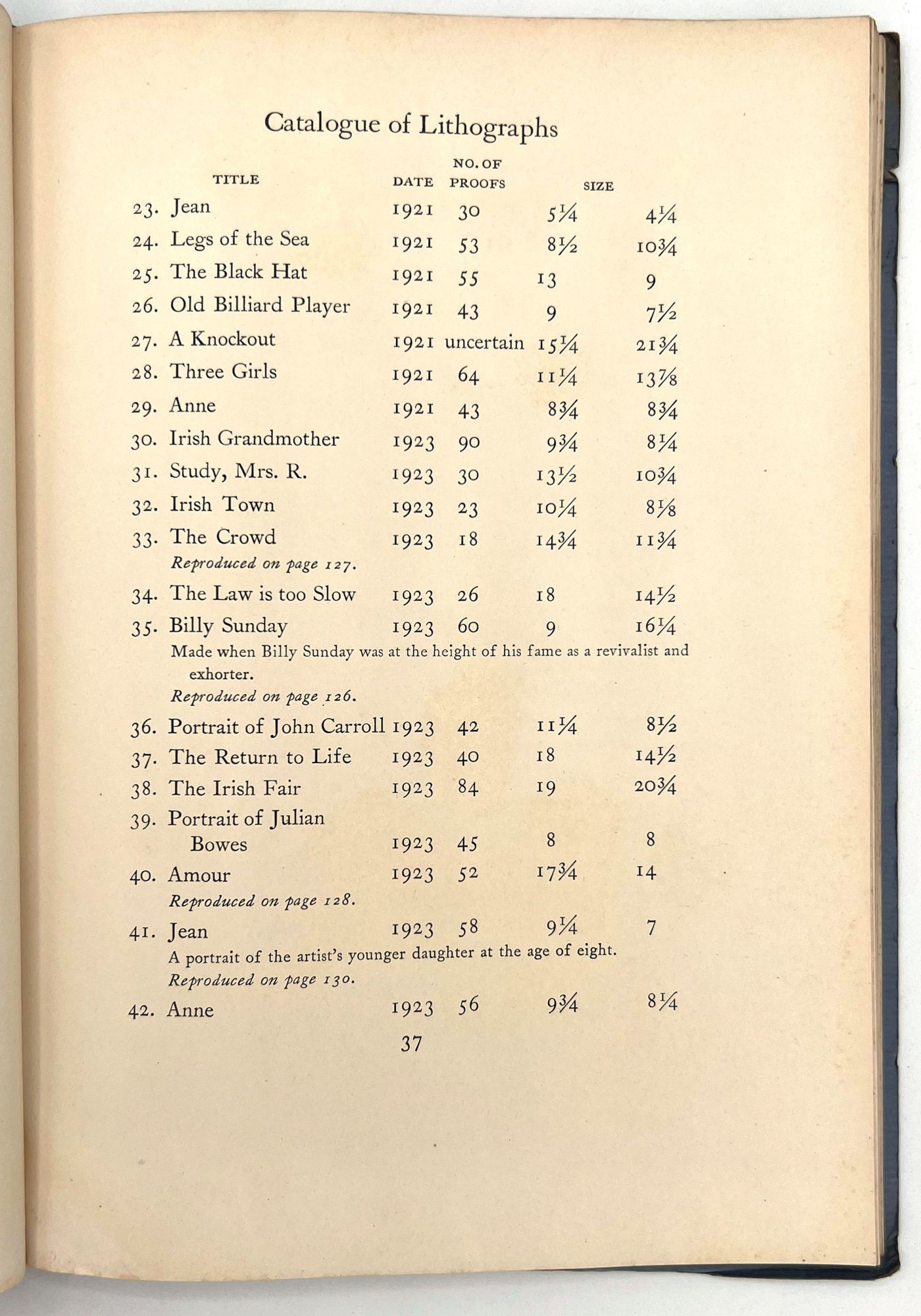 Catalog of the George Bellows Memorial Exhibition, held in 1925 at The Metropolitan Museum of Art, 132 pages. Contains catalogs of oil paintings, drawings and lithographs. All of the paintings, twelve of the drawings, and thirteen of the lithographs, have been reproduced in the catalog, a total of eighty-eight plates in all. Condition: covers soiled, its edges creased, with few small margin tears. Soiling on first and last pages (no illustrations on these pages). Staining on fore edges, top edges. Otherwise VG. Small name stamp imprint on first blank.
