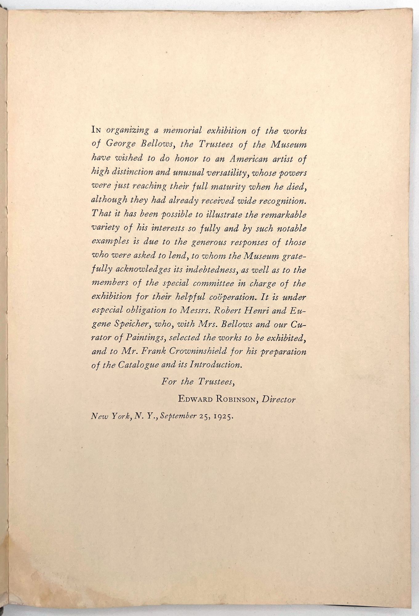 Catalog, George Bellows Memorial Exhibition, 1925
