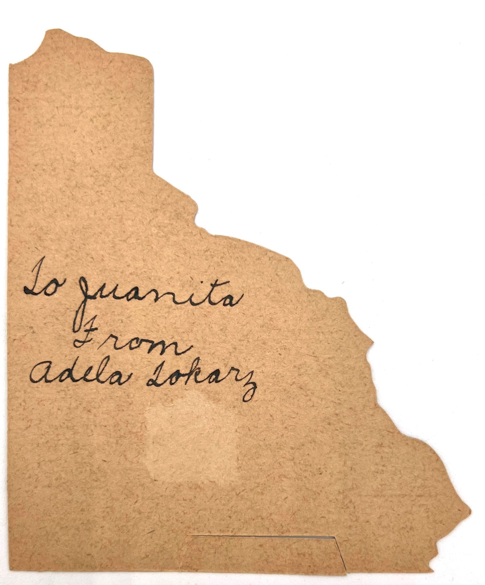 The condition is good. Pencil inscription is on the back. Printed in Germany. Fold back stand at base.