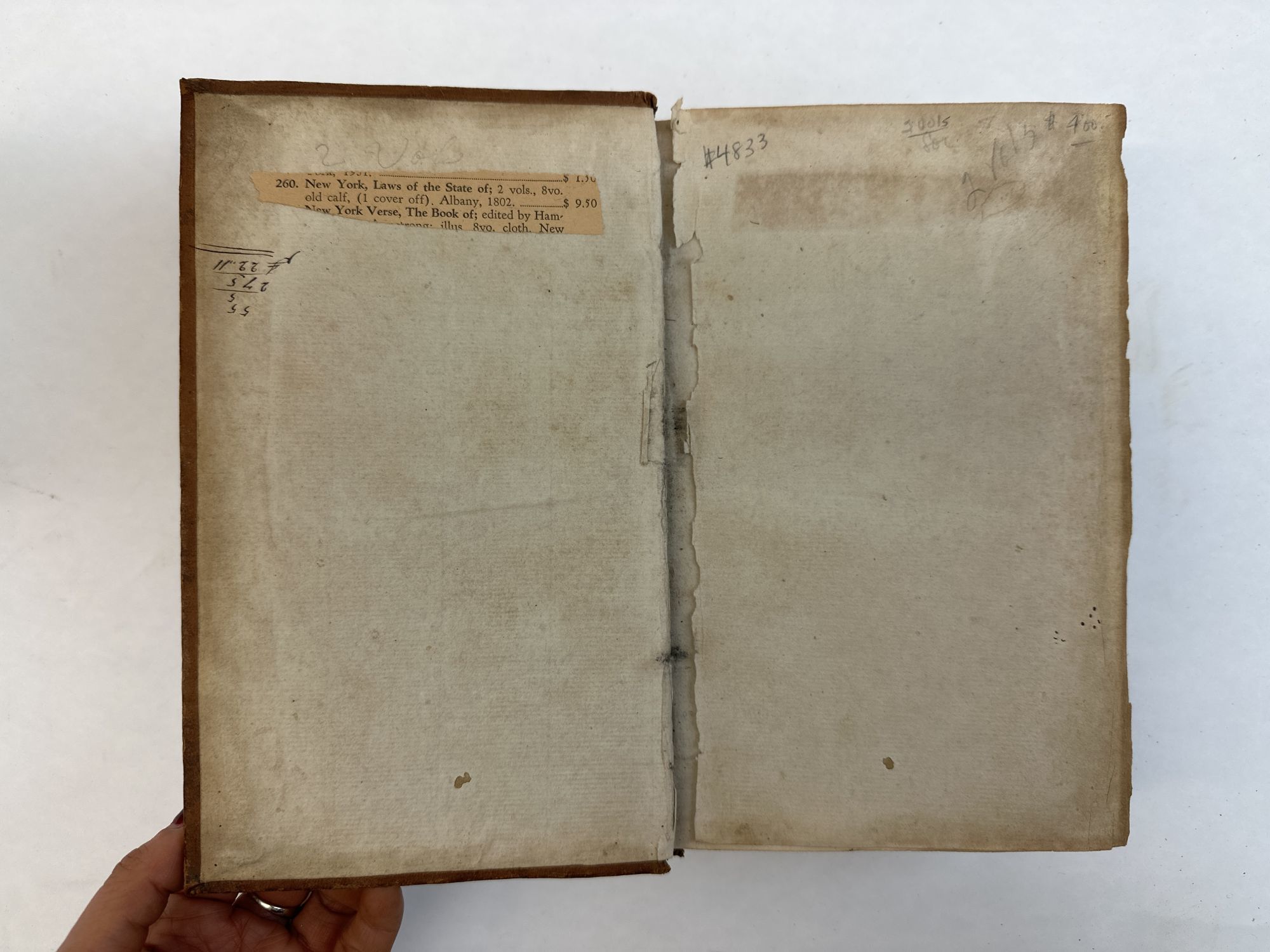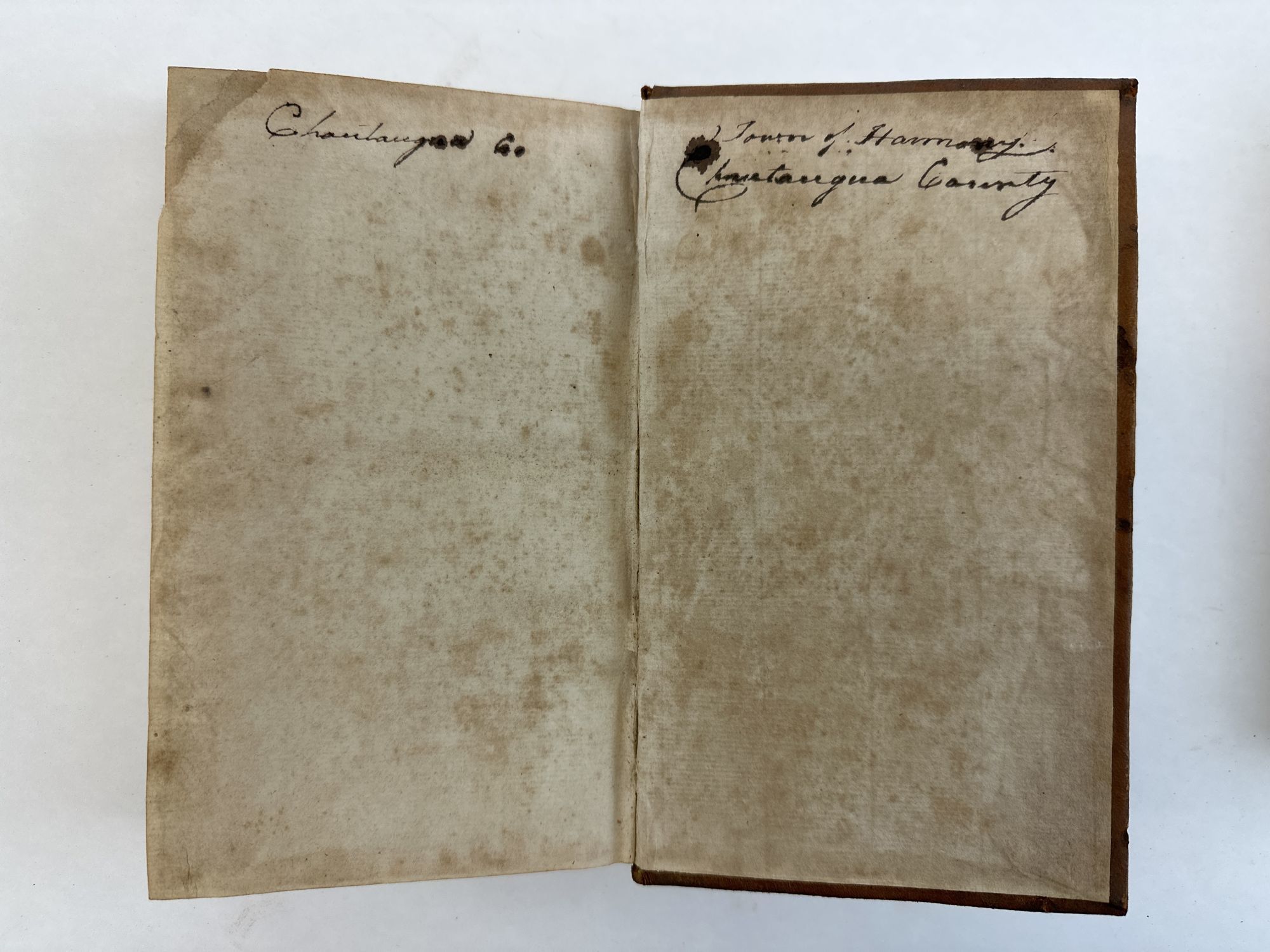 Albany: Charles R. and George Webster, 1802. First Edition. Hardcover. Octavos, Two Volumes; G; Fully bound in leather with red labels and gilt lettering to ruled spine; Boards have light edgewear, light+ bumping to corners, light rubbing and abrasions, light+ wear to hinges, and light+ wear/cracking to spines; Volume II has a cluster of small chips in back cover; Textblock shows light age toning to edges (very light interiorly), and occasional light foxing; Volume I has a loose ffep and small newspaper clipping pasted to front paste down, light damp-staining to rear feps, and previous owner notes to rear end pages in 19th century hand; Ownership marking penned to rear paste down in 19th century hand; CONTENTS: Vol. I. ([4], 691 pages) -- Vol. II ([8], 544 pages). RWO.